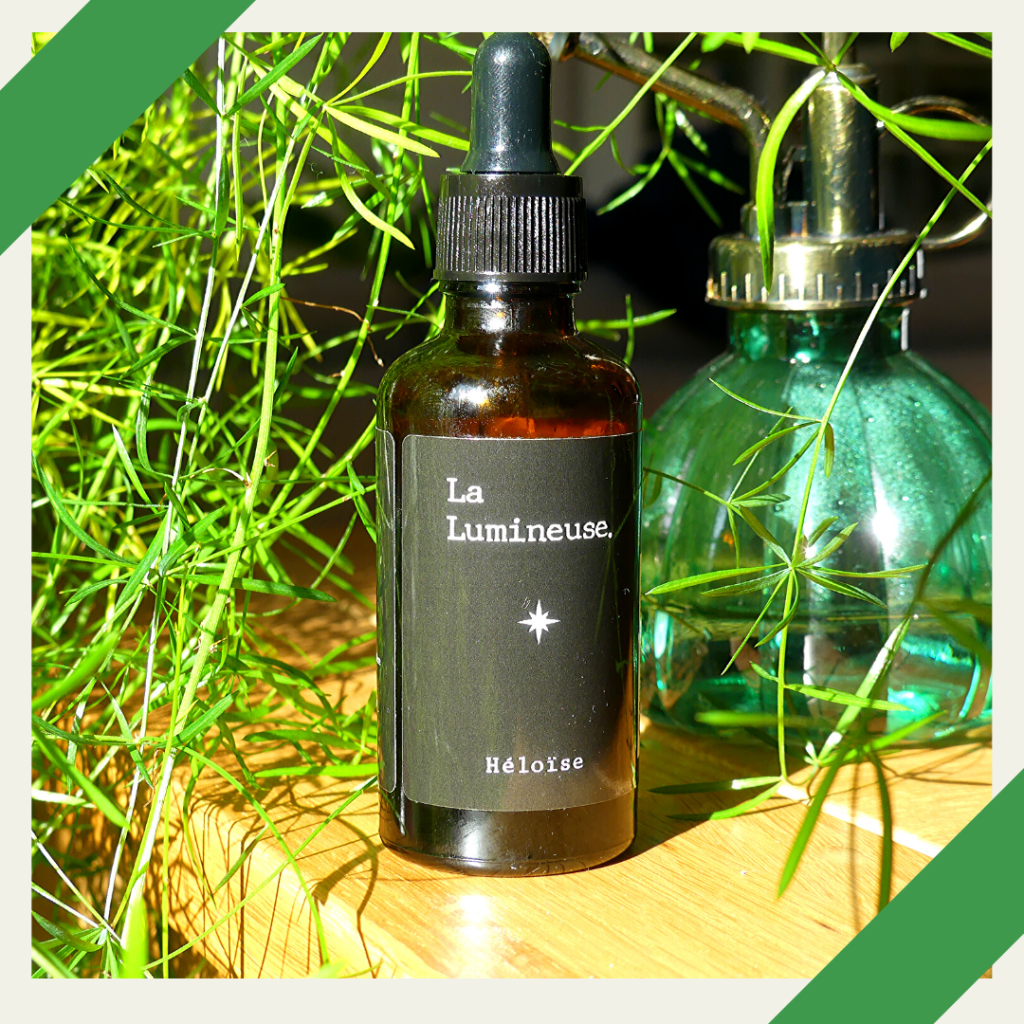 Il s’agit de l’huile La Lumineuse de la marque Héloise. Cette marque est celle d’Héloïse Monchablon, une créatrice de contenu que je suis depuis longtemps sur Youtube et Instagram. Je vous laisse cliquer sur les liens pour découvrir son univers.