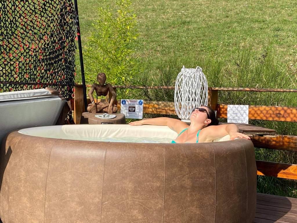 Ni une, ni deux, j’ai sauté dans mon maillot de bain puis dans le jacuzzi, lunettes de soleil sur le nez et boisson fraîche dans la main. La détente et le repos tant attendus pouvait commencer !