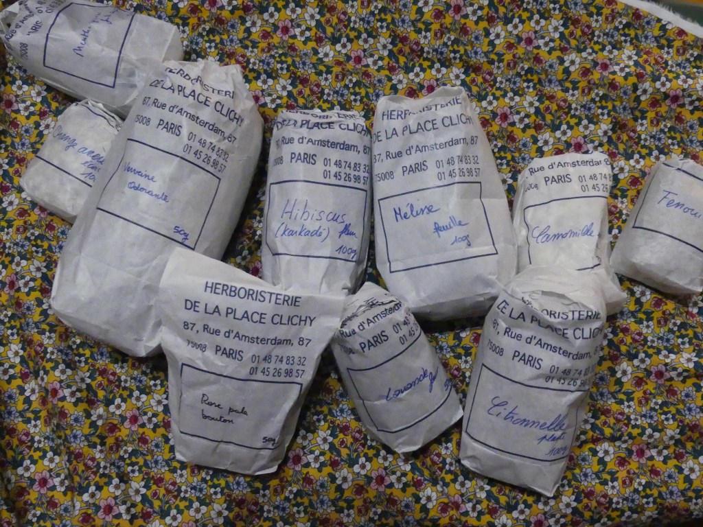 Enfin, Louise nous a proposé un atelier tisane. Elle avait fait un stock de différentes plantes chez son herboriste et nous a parlé des vertus de chacune pour, qu’à notre tour, nous puissions créer notre propre tisane, unique, que nous avons ensuite emballés dans un beau tissu.
