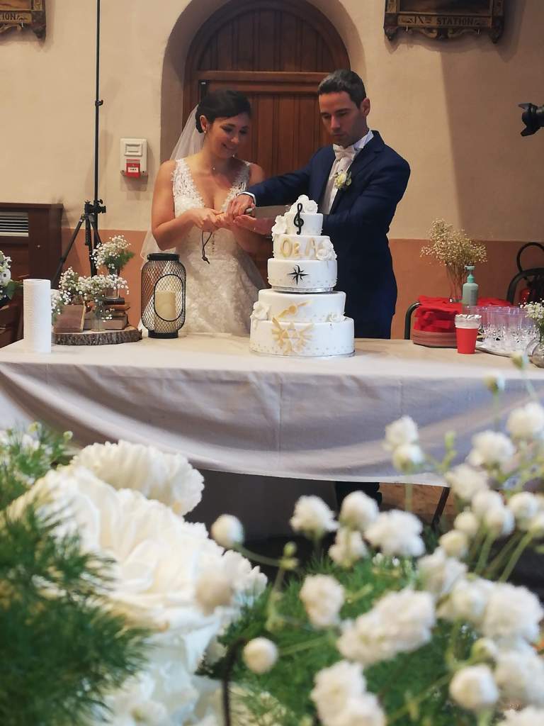 Nous avons pu couper notre gâteau dans l’église. Un moment incongru mais tellement unique. Je pense que tout le monde s’en souviendra ;)