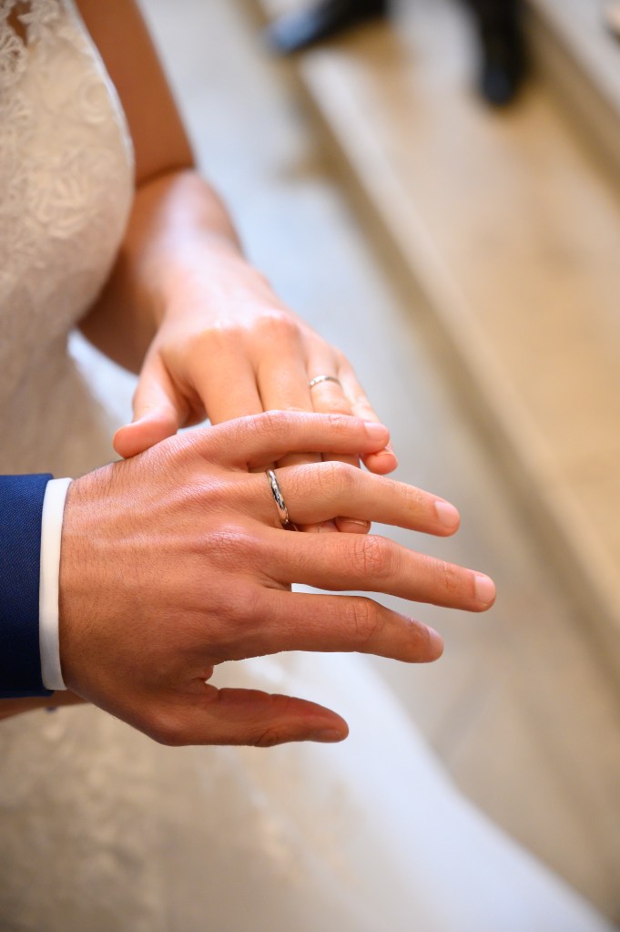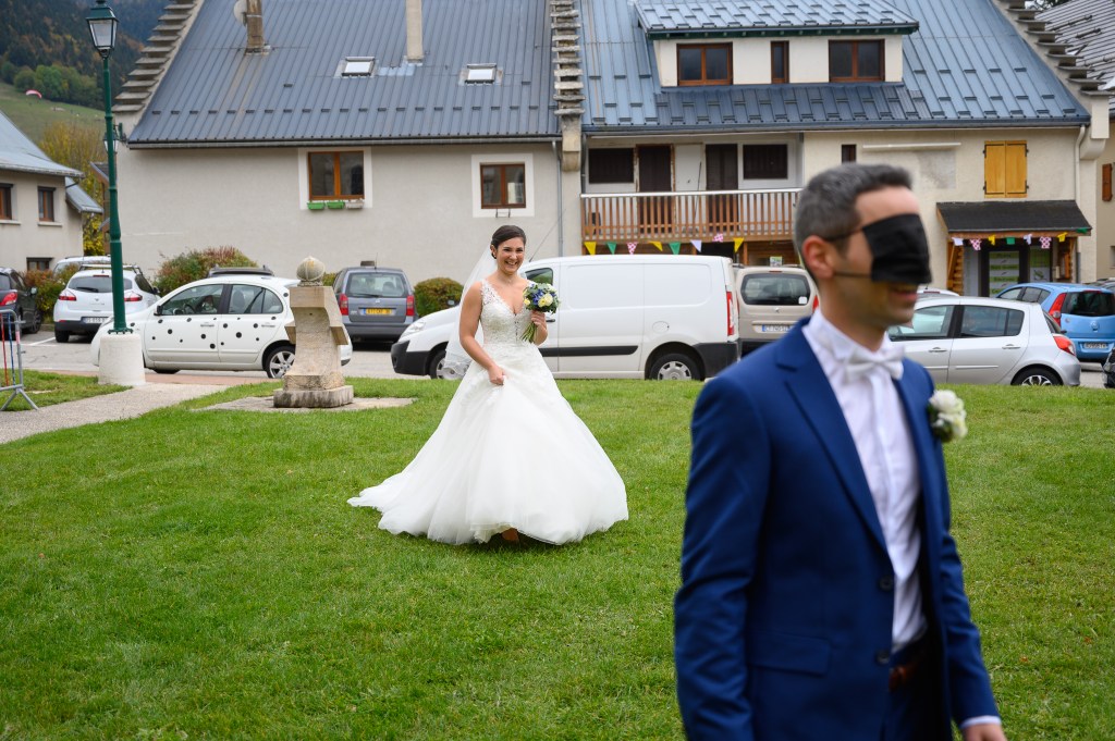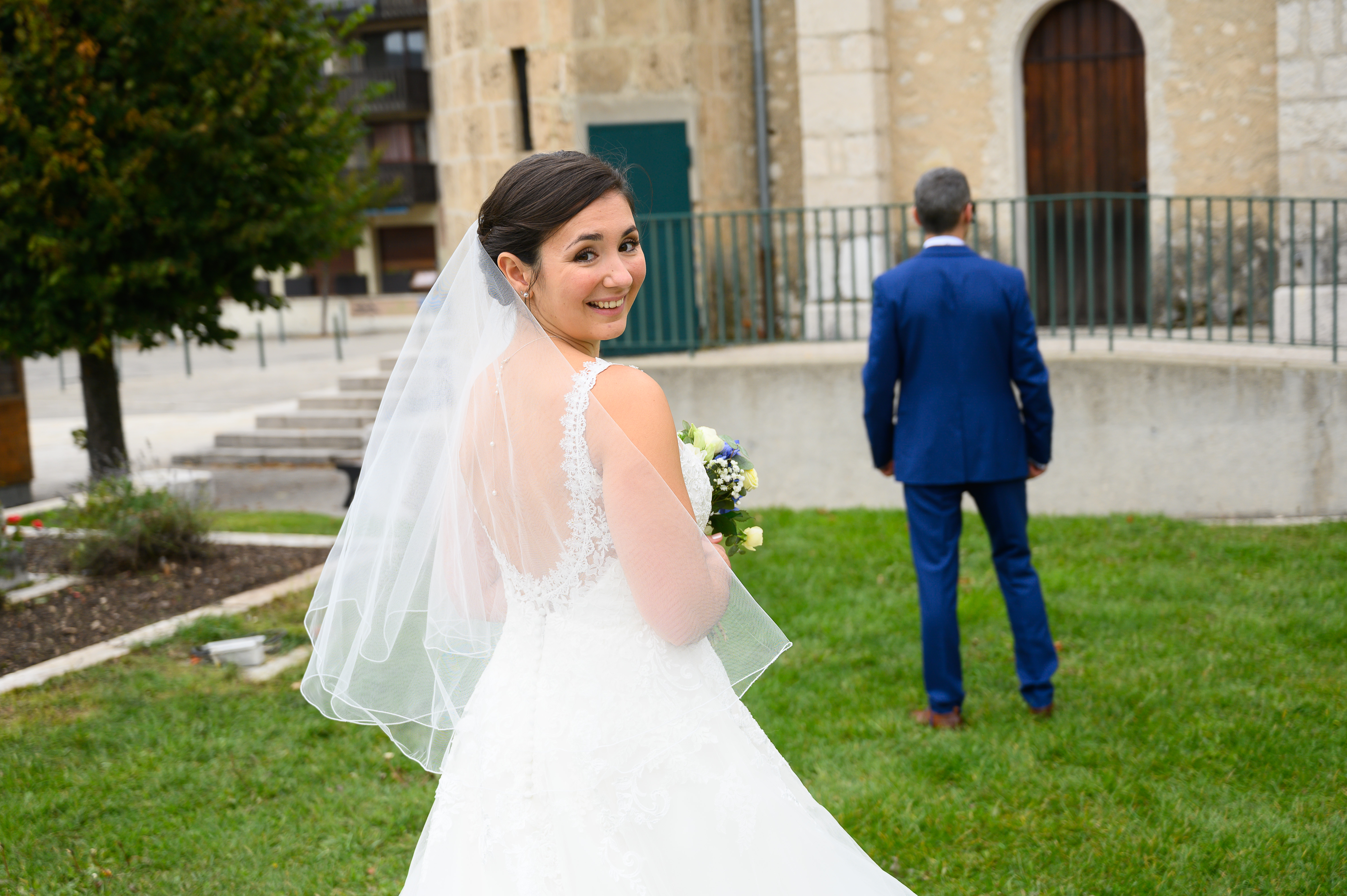 Remonter cette allée avec mon père reste un moment cher à mon cœur. Il n’arrêtait pas de me dire » Tu vas trop vite ! » et de me faire des blagues. Pas un instant, je n’ai ressenti de stress. Je savais qu’Alex m’attendait au bout. J’ai vu tout les regards émus de nos proches, masqués à cause des contraintes sanitaires, mais les yeux brillants.