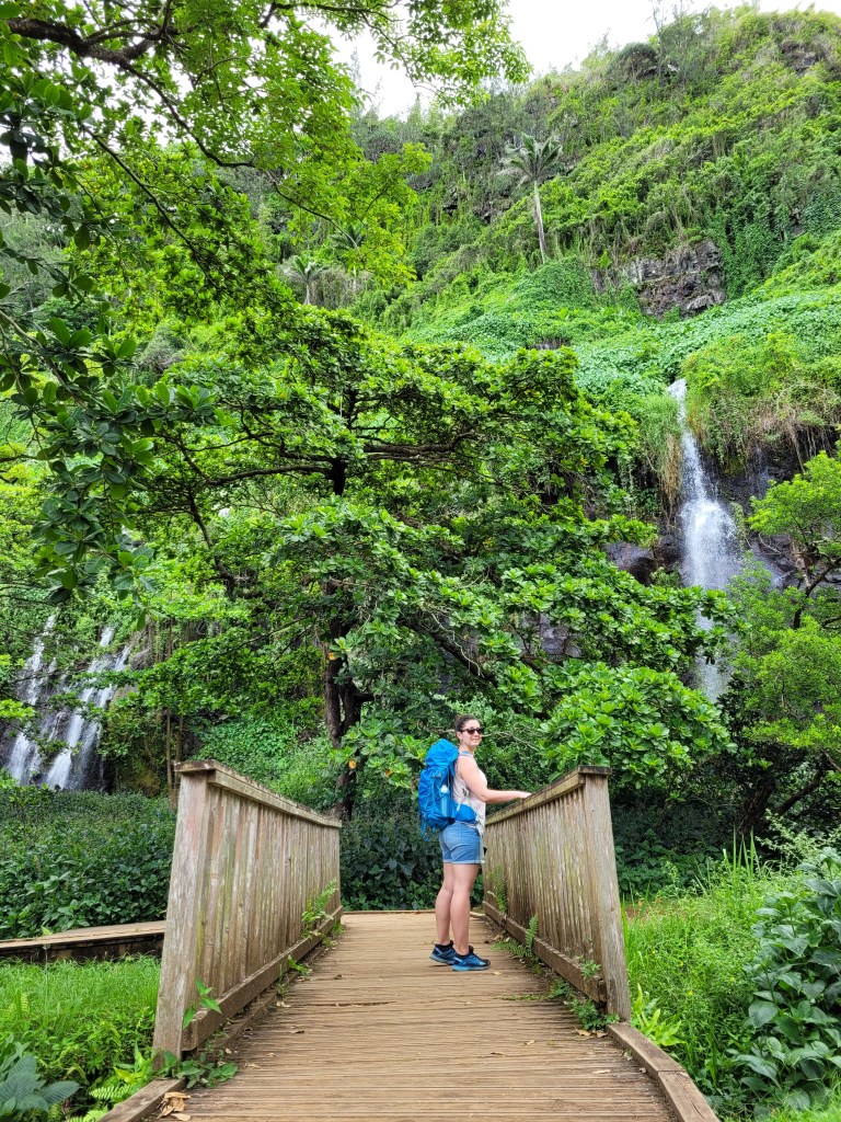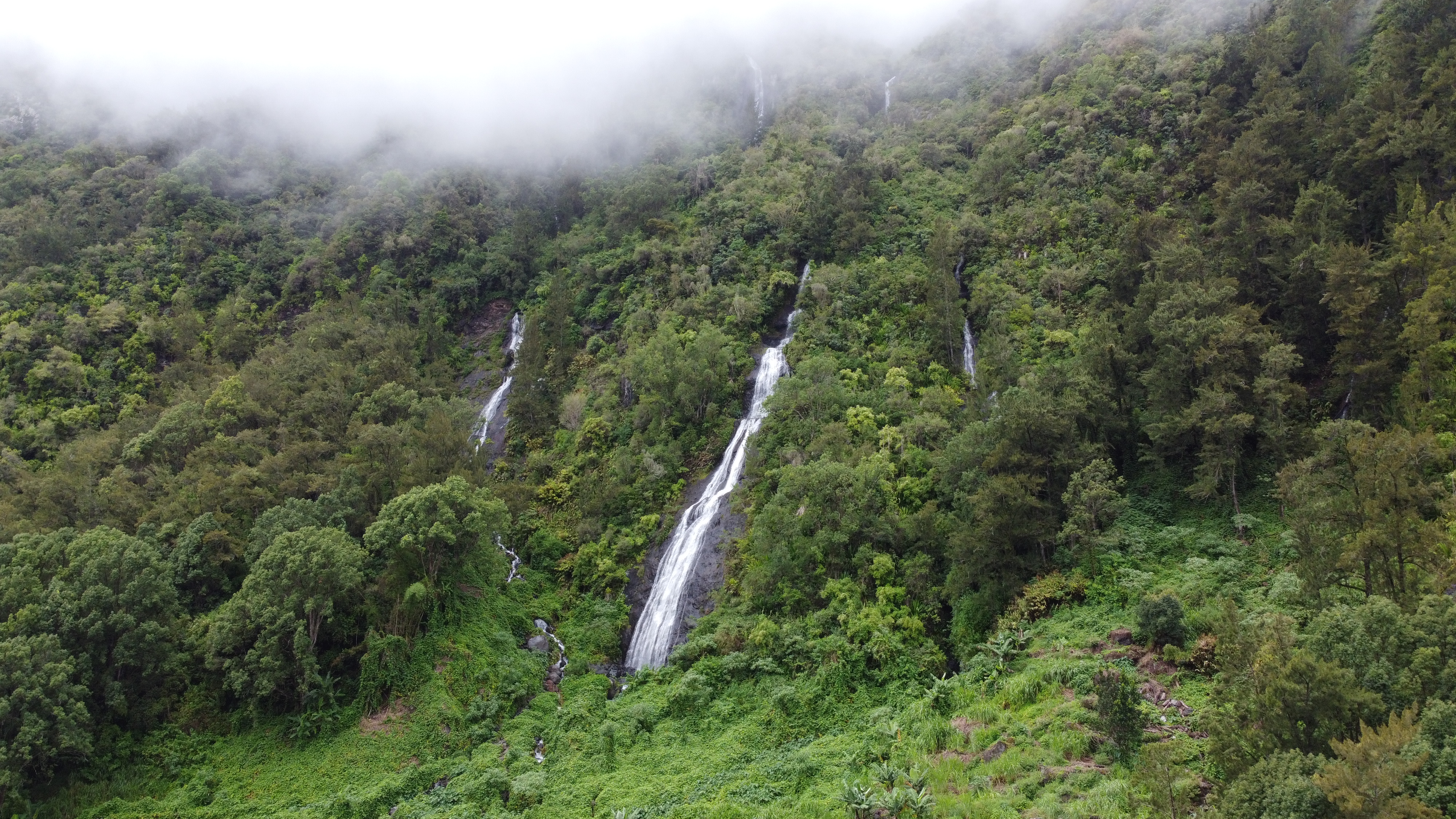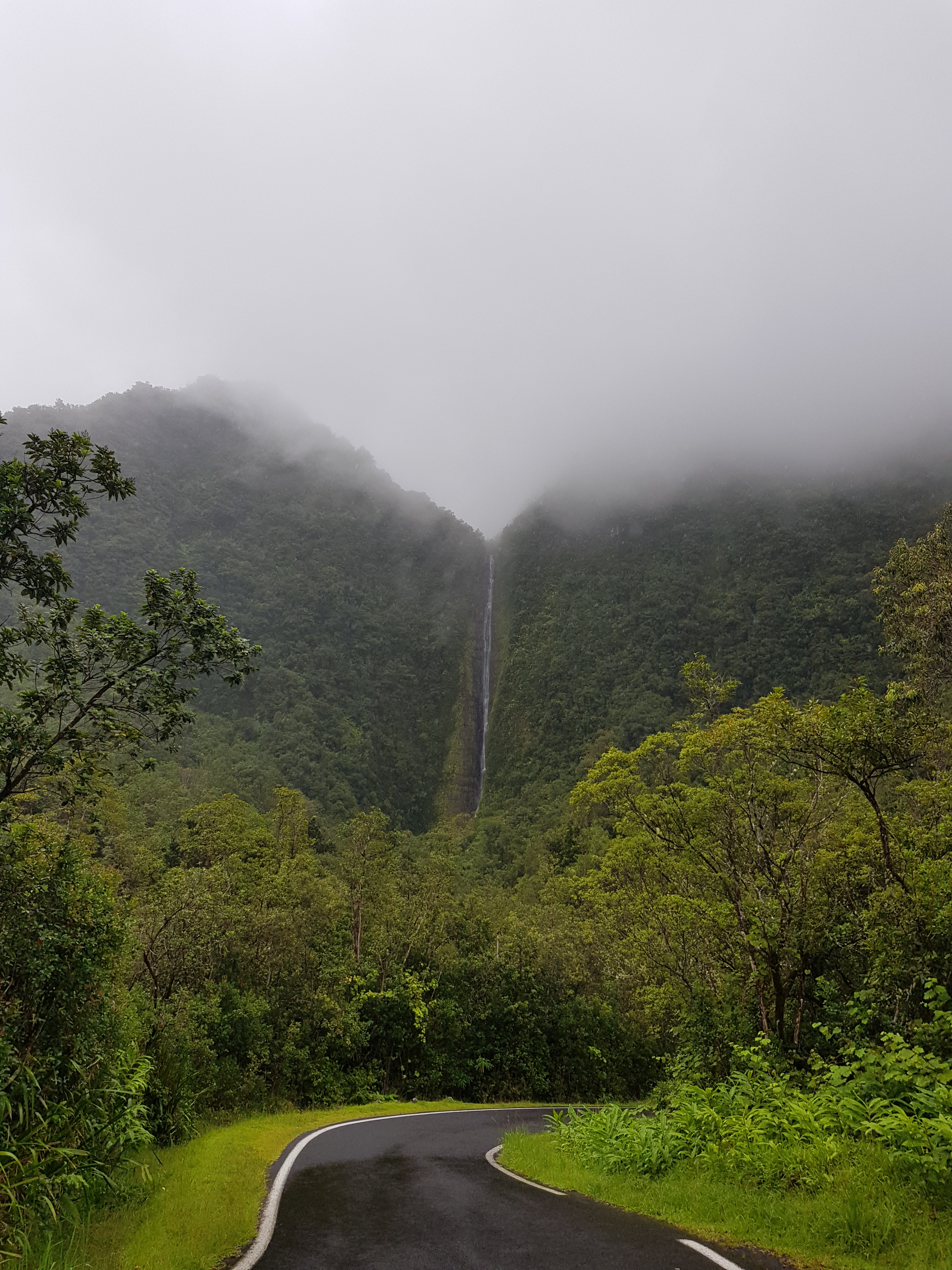 La route suit une rivière et se fraie un chemin à travers des falaises verdoyantes et vertigineuses striées de cascades blanches. Les hauts remparts de végétation sont impressionnants et vous projettent dans de grands films d’aventure.