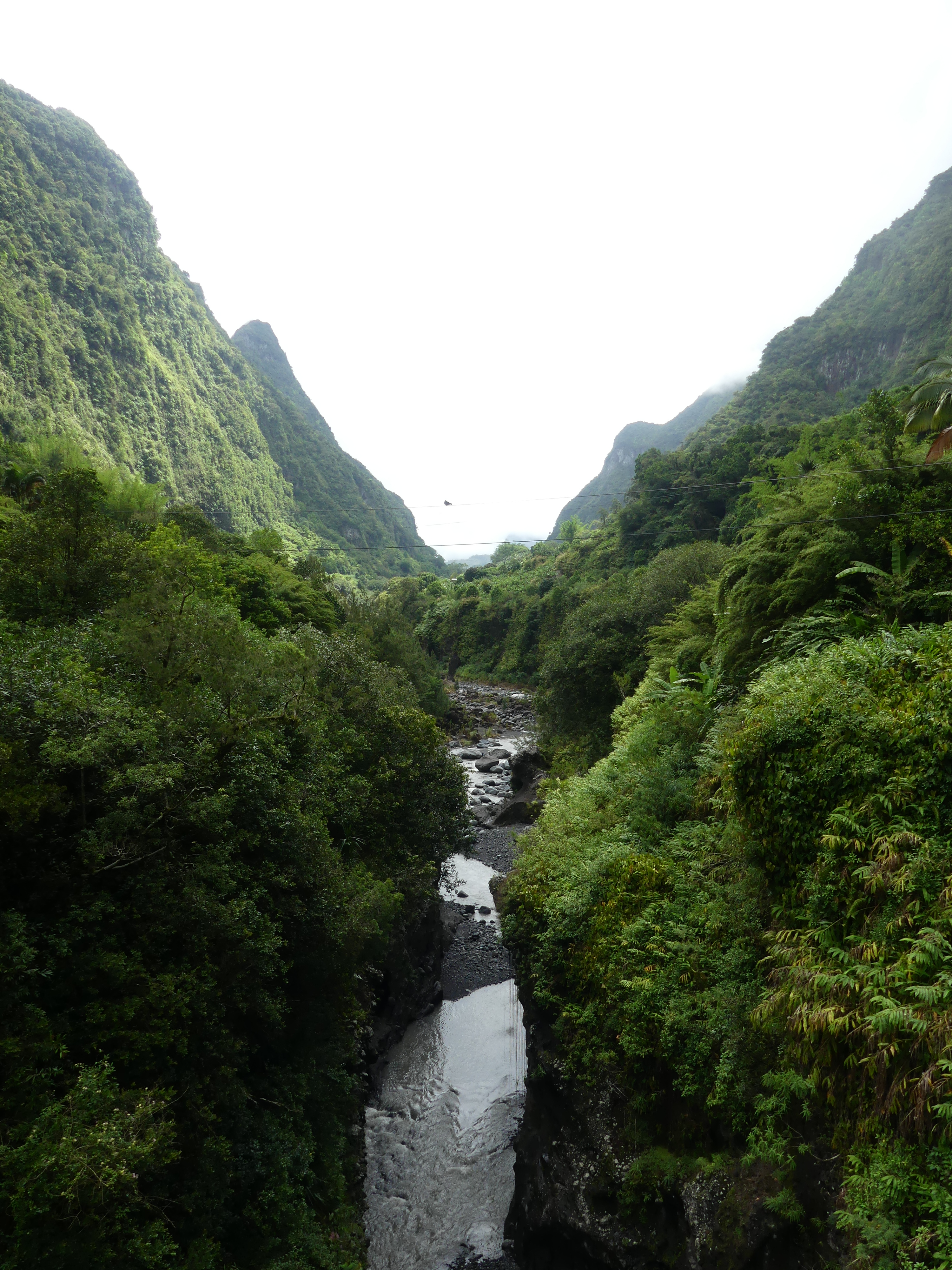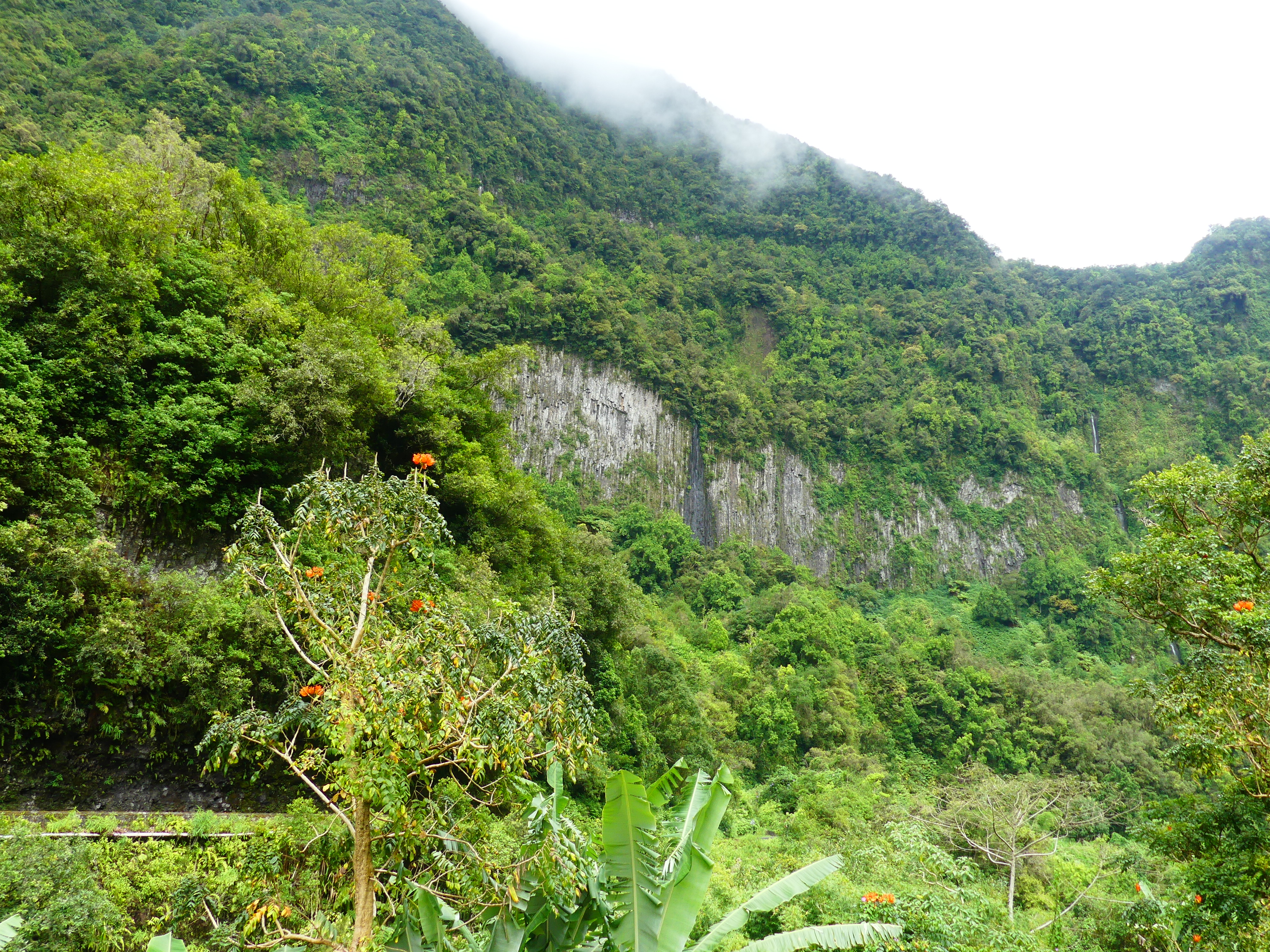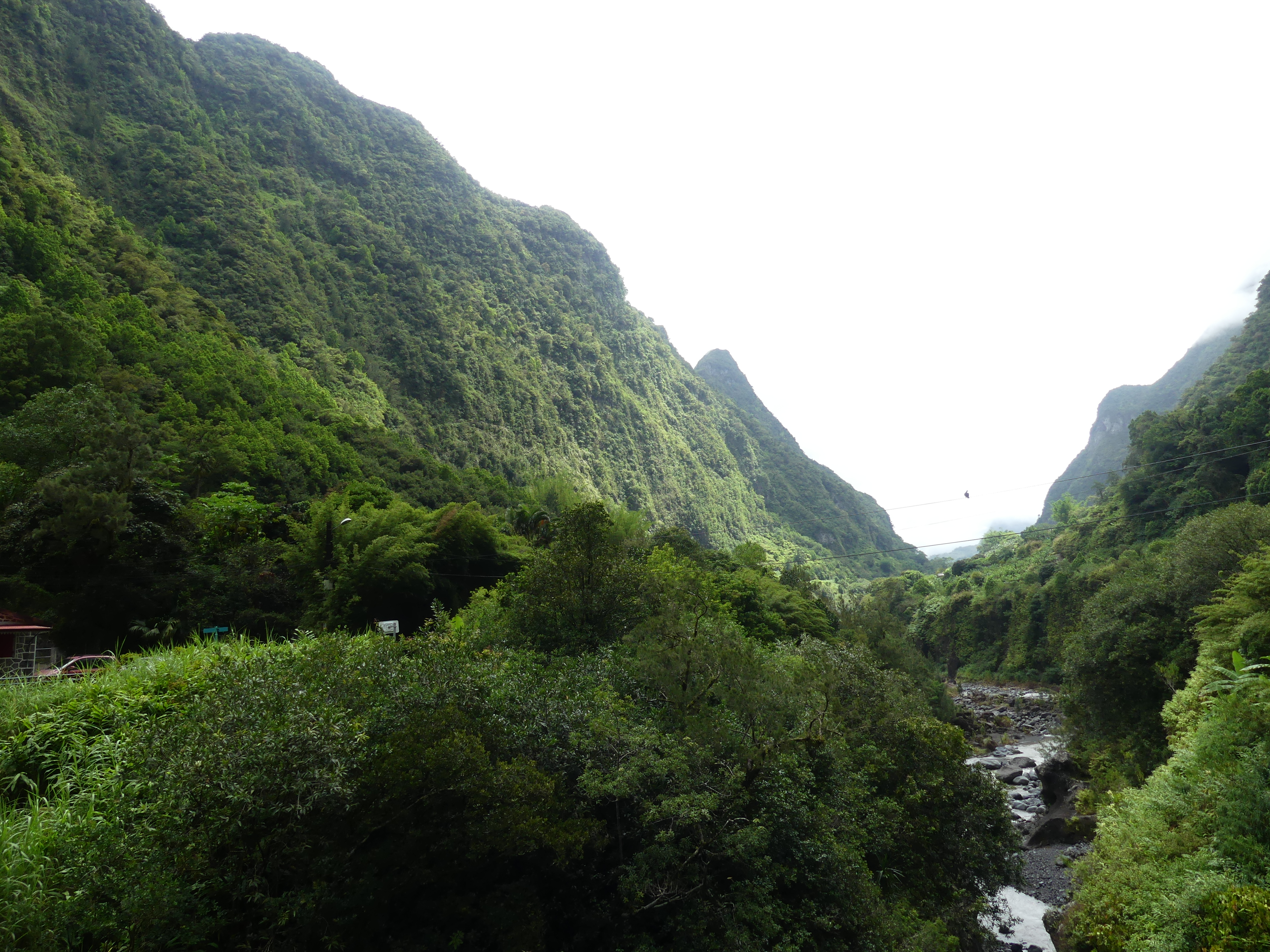 La pluie faisant son apparition, nous sommes partis en direction de notre maison d’hôtes à Grand Ilet, le dernier grand village au fond du cirque. La route est toujours aussi belle, aussi sinueuse et aussi vertigineuse par endroits.