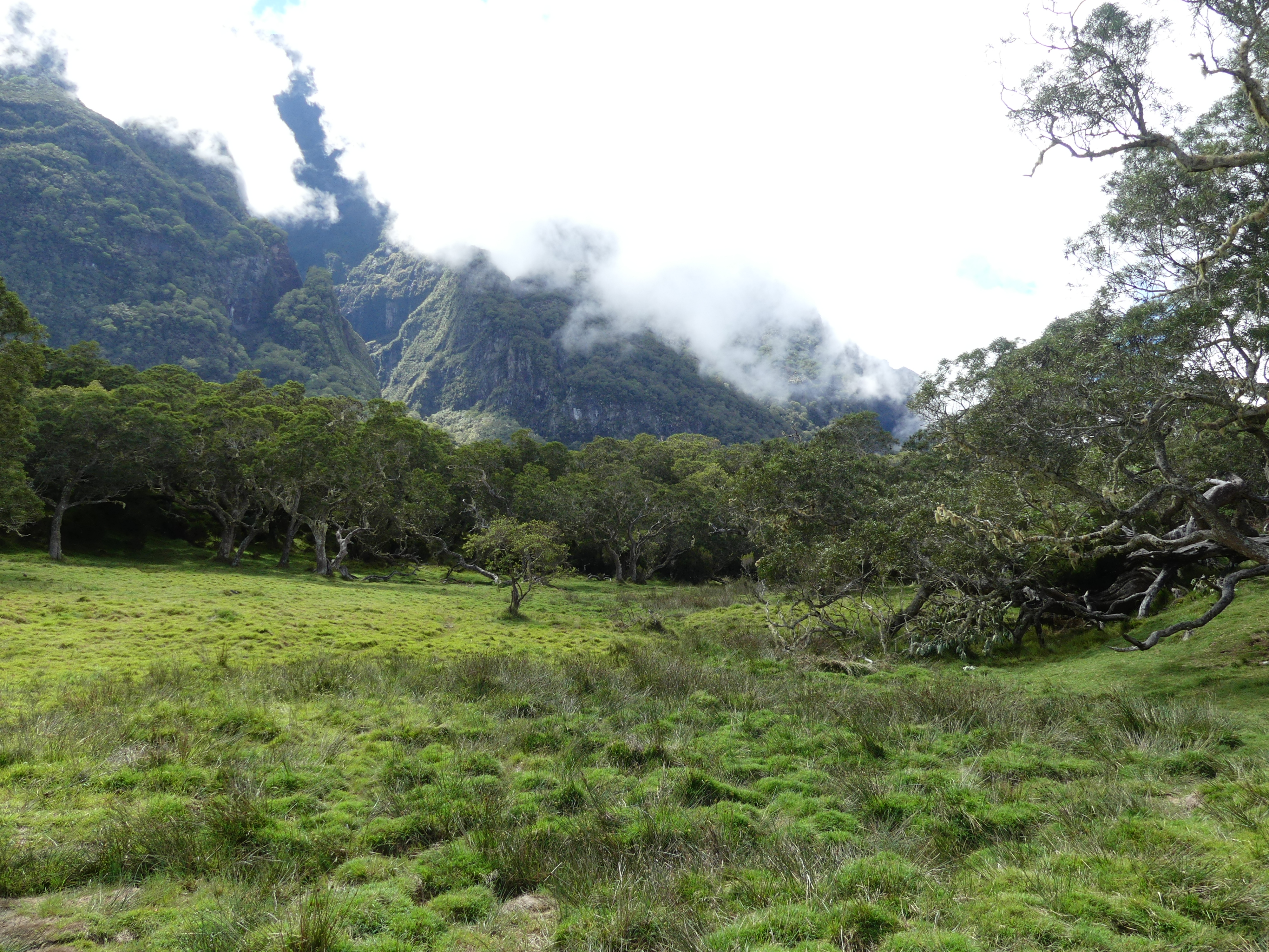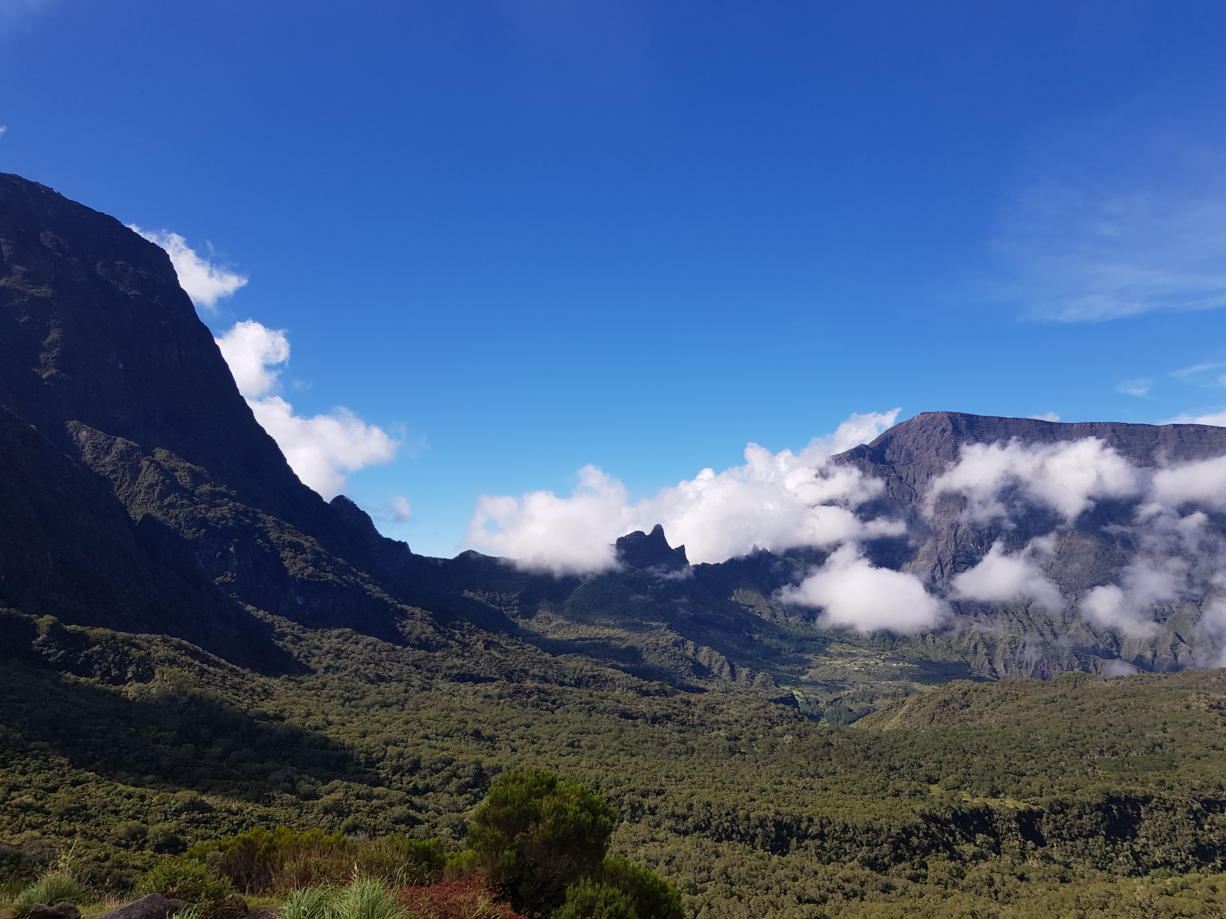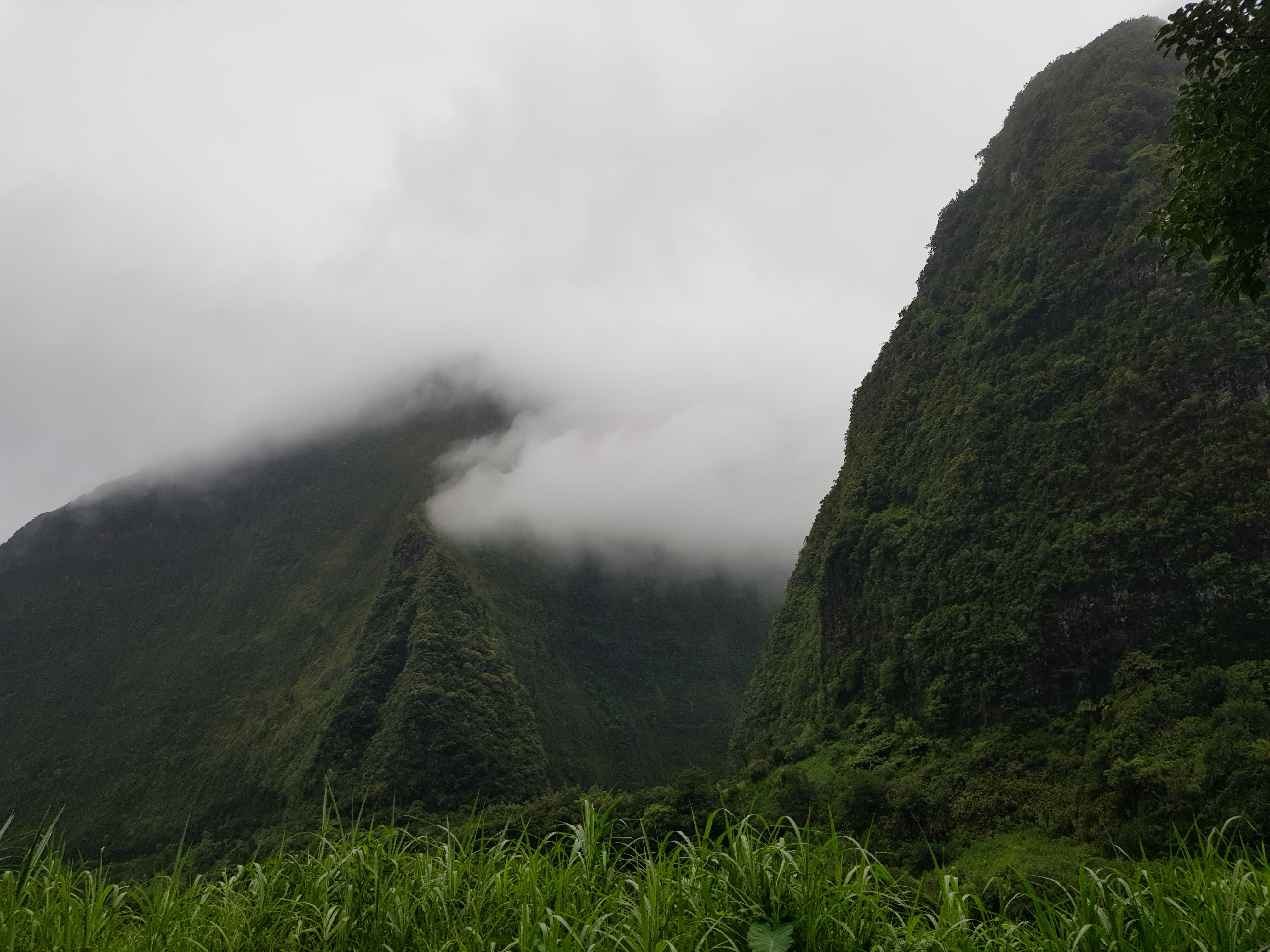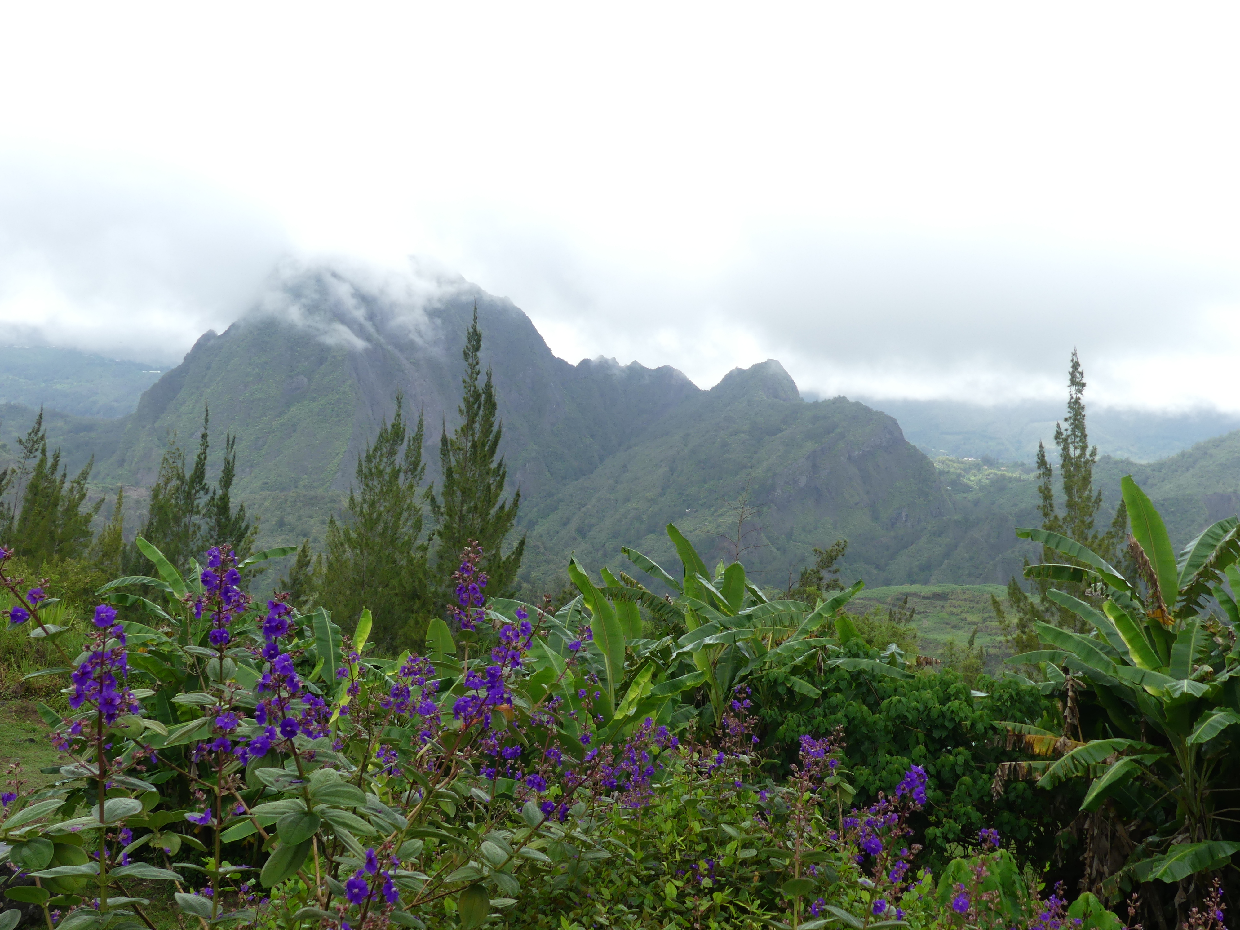 Au fur et à mesure de la montée, les nuages se lèvent. Le compte à rebours inlassable de la Réunion. Mais le paysage n’en reste pas moins sublime.