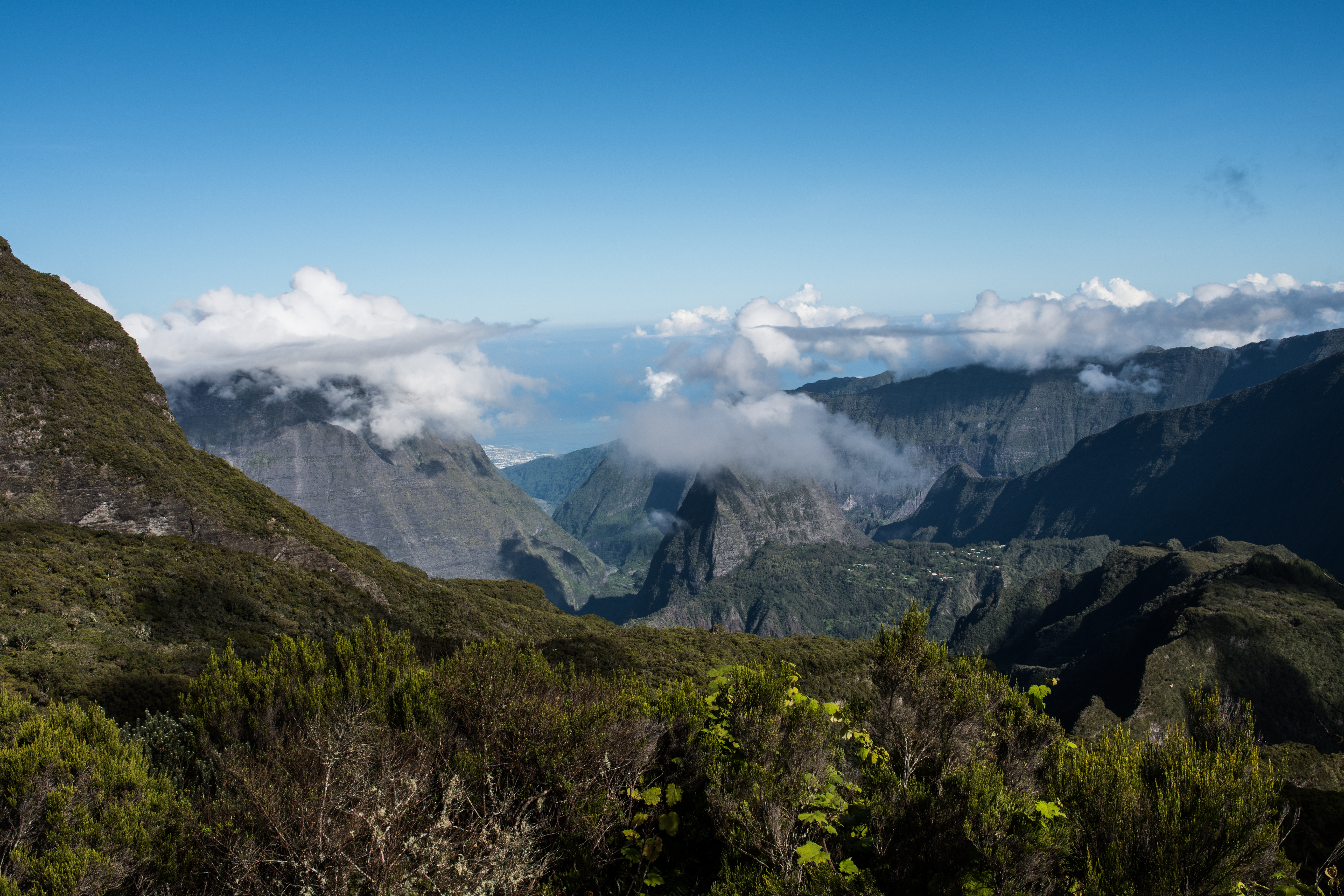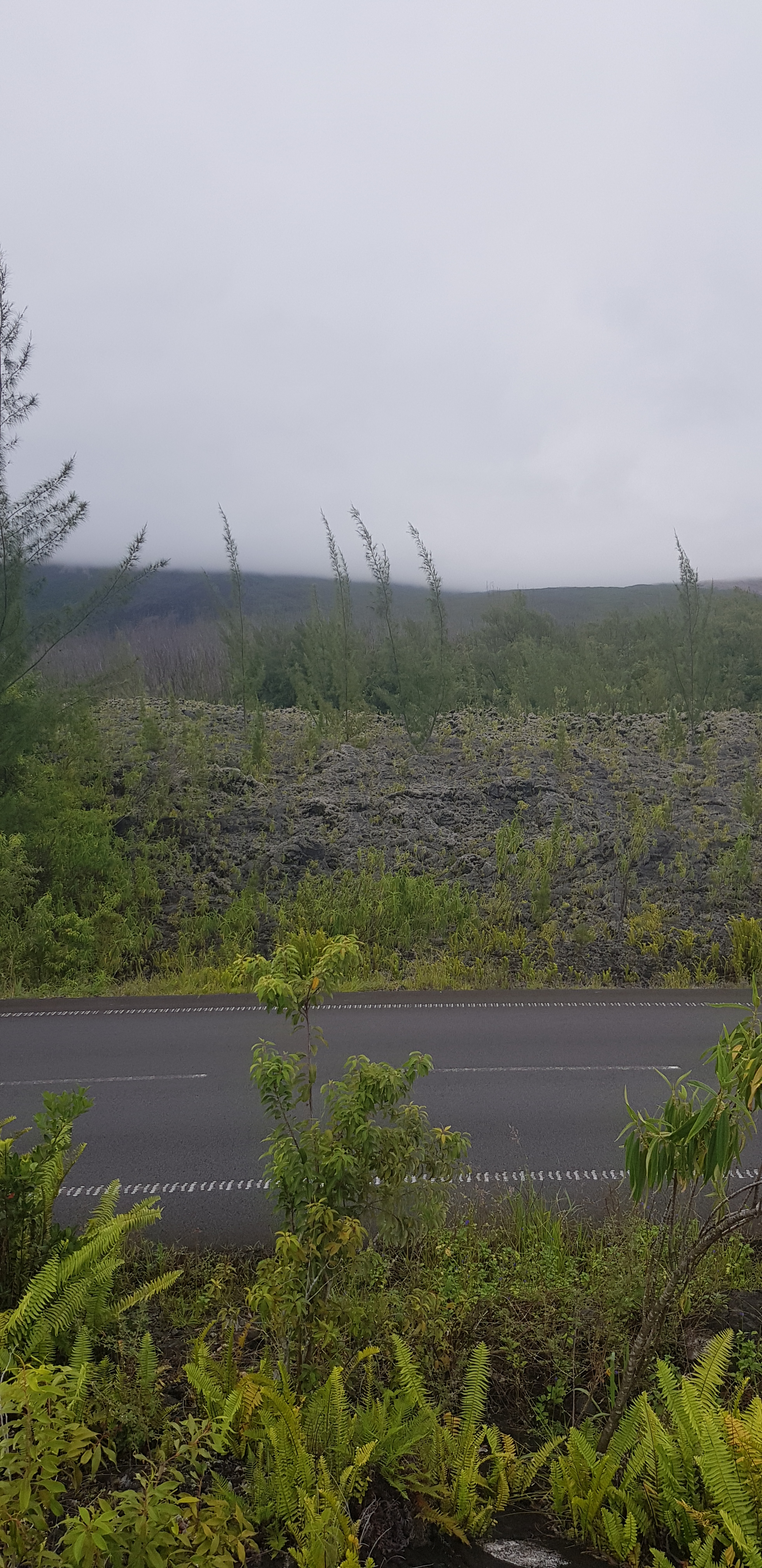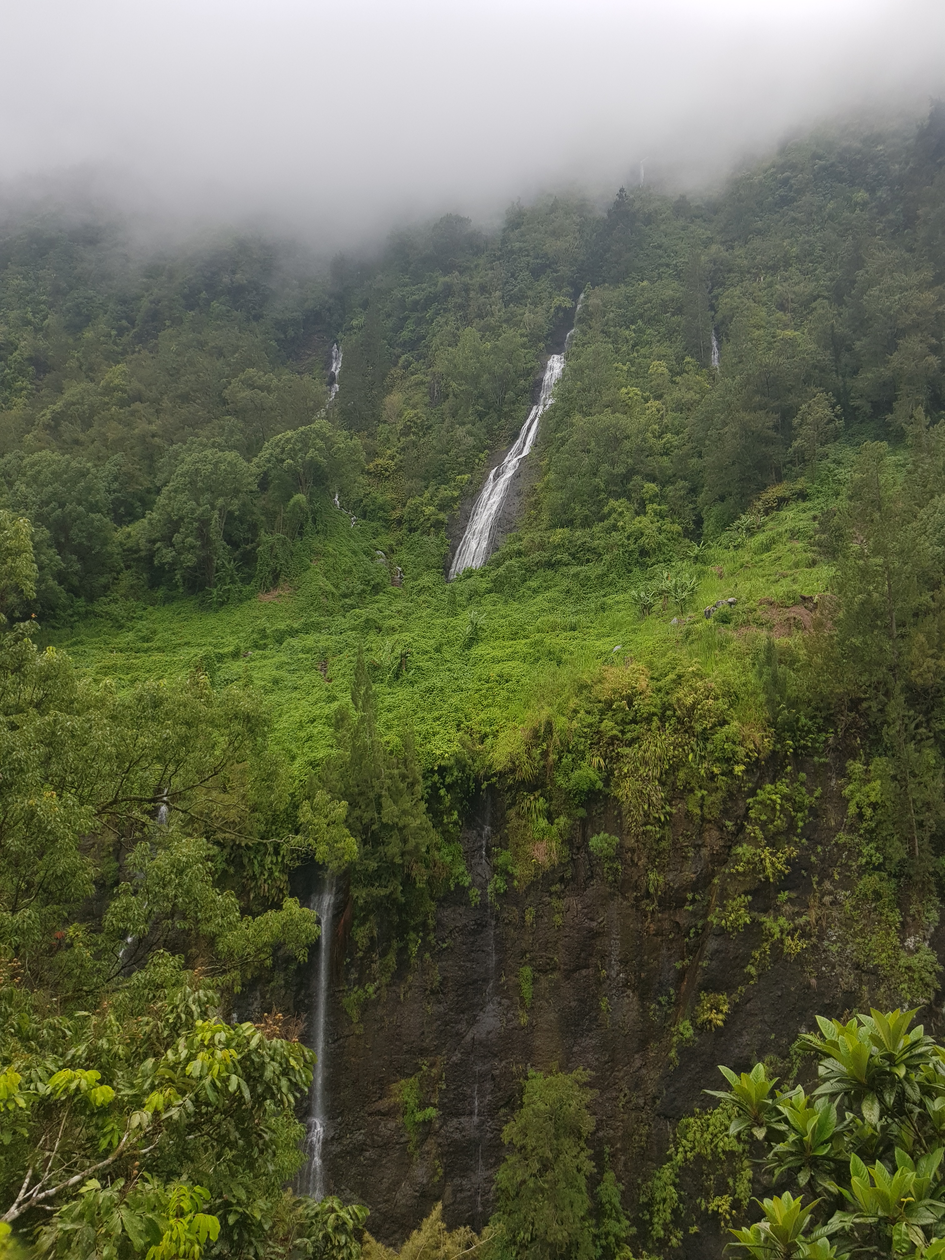 Au fur et à mesure de la montée, les nuages se lèvent. Le compte à rebours inlassable de la Réunion. Mais le paysage n’en reste pas moins sublime.