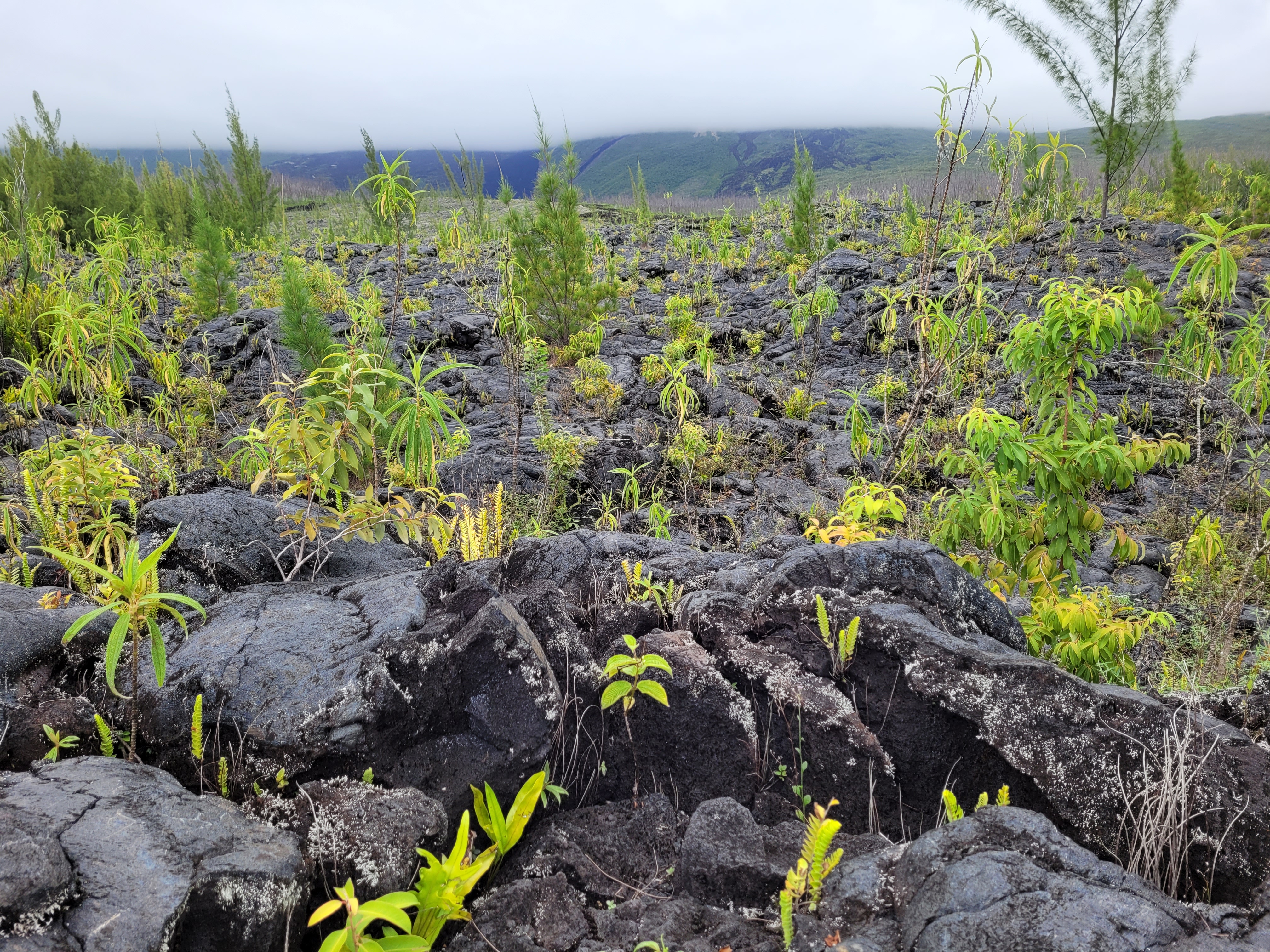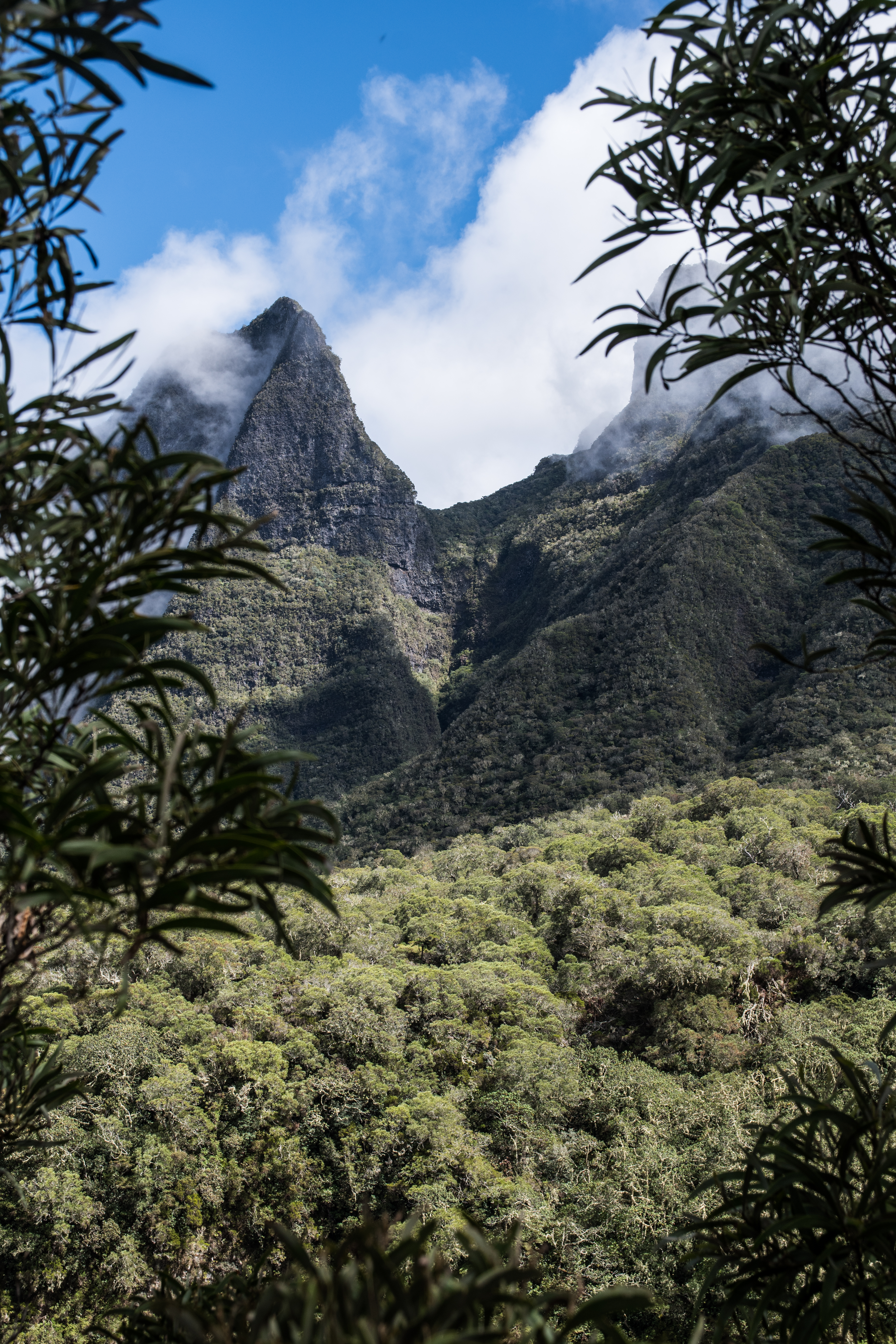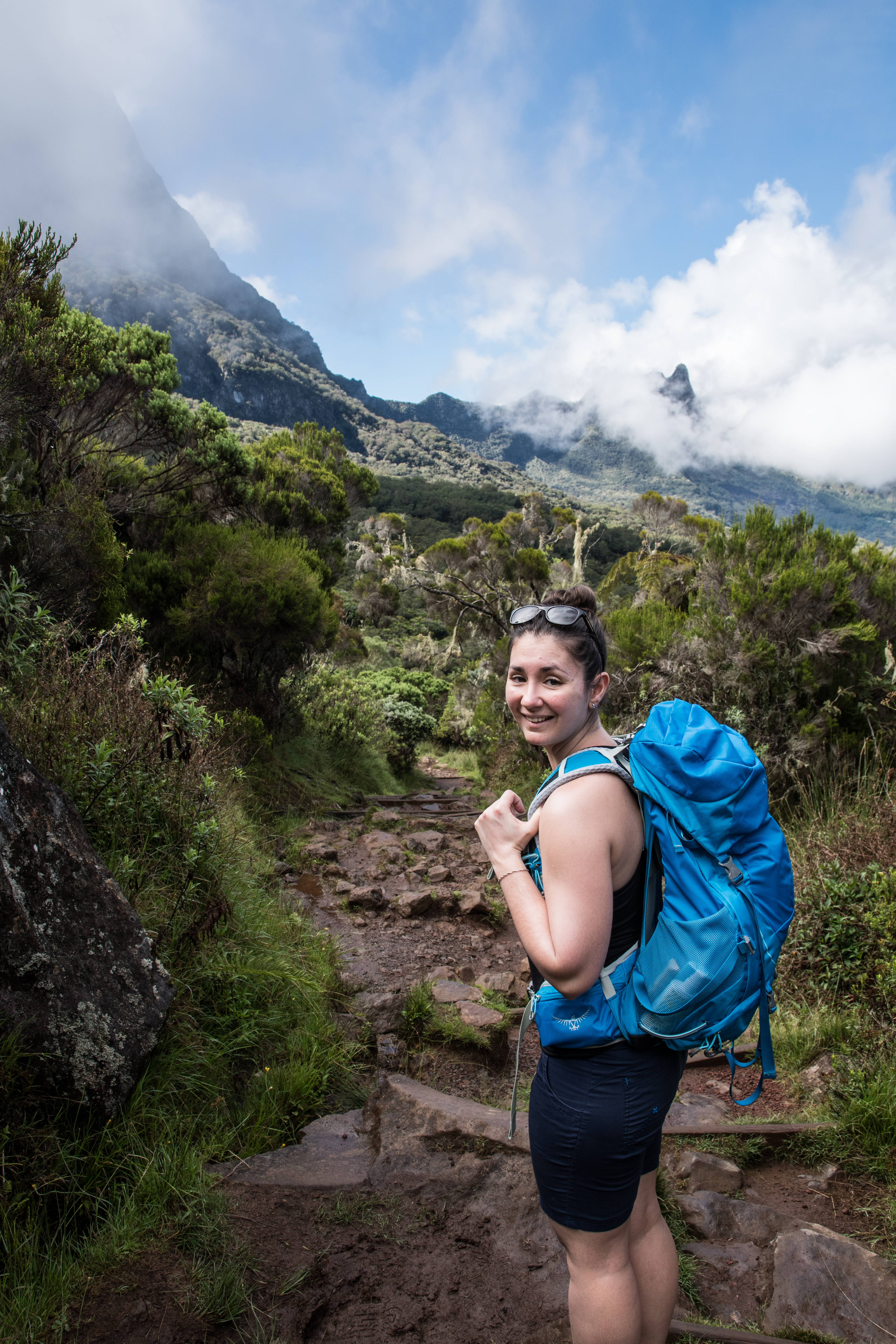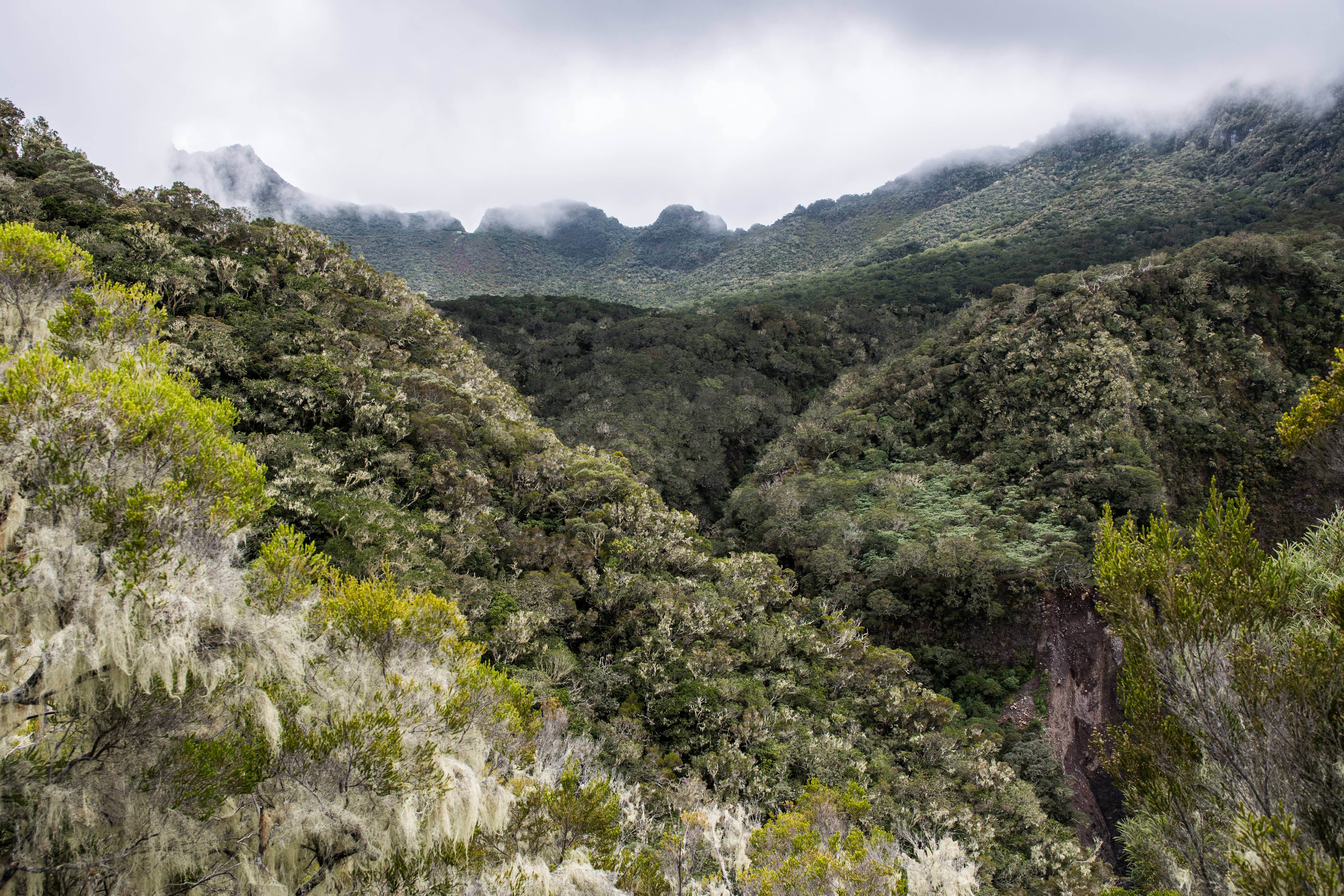 Au fur et à mesure de la montée, les nuages se lèvent. Le compte à rebours inlassable de la Réunion. Mais le paysage n’en reste pas moins sublime.