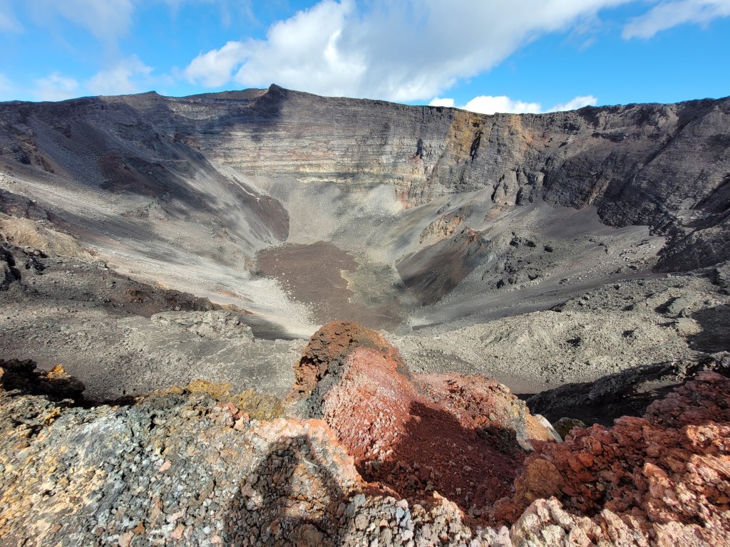 Nous atteignons quand même le cratère avant qu’il ne soit recouvert de nuages. Un spectacle saisissant, une création de la nature difficile d’accès mais qui vaut les efforts fournis.