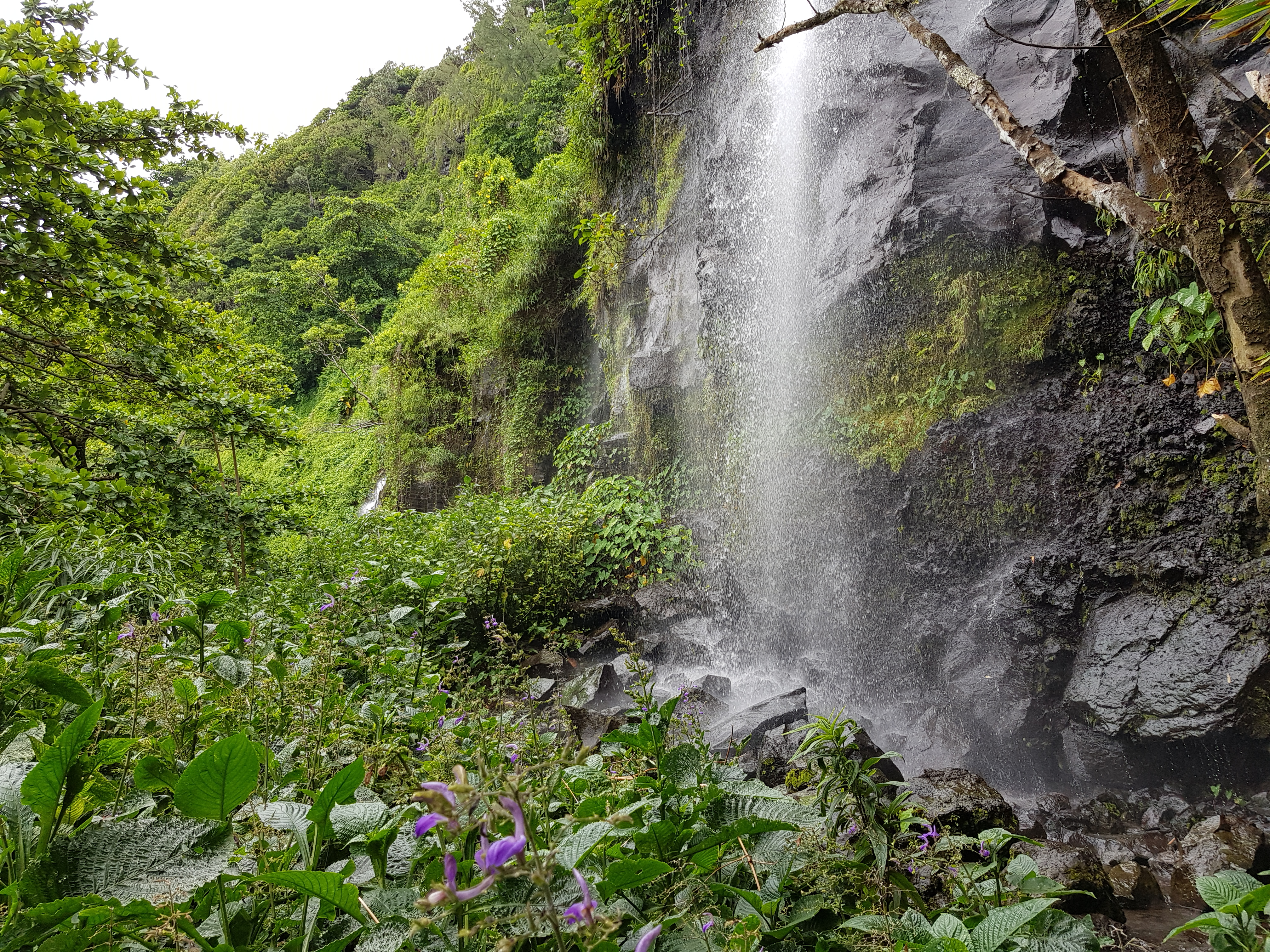 Jour 2 : Le lendemain, après un petit déjeuner à l’hôtel, nous avons pris tardivement la direction du site de Takamaka à l’est de l’île. Nous l’apprendrons à nos dépends, la Réunion appartient à ceux qui se lèvent tôt. A notre arrivée sur le site, les nuages s’étaient déjà levés et au lieu de voir une superbe chute d’eau dans un écrin verdoyant, nous n’avons vu que de la brume. Nous avons attendu un peu puis nous sommes résolus à redescendre. La route était très belle et au détour d’un virage, une grande cascade s’est offerte à nous. L’occasion de faire de belles photos !