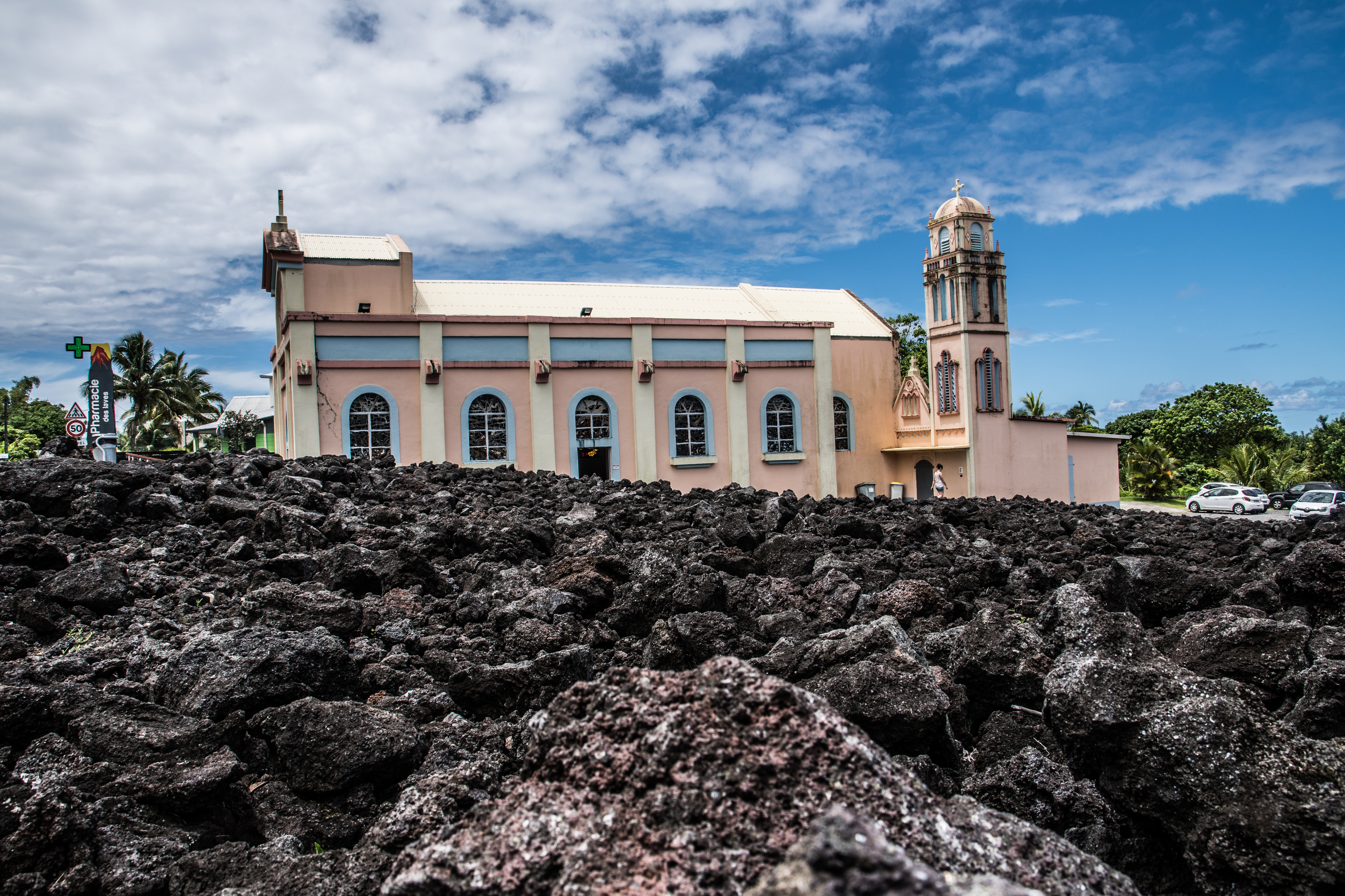 A Piton Sainte Rose, nous faisons un stop pour voir de nos propres yeux, cette chapelle miraculée où la lave est entrée par la porte en 1977 et s’est figée autour de l’église.