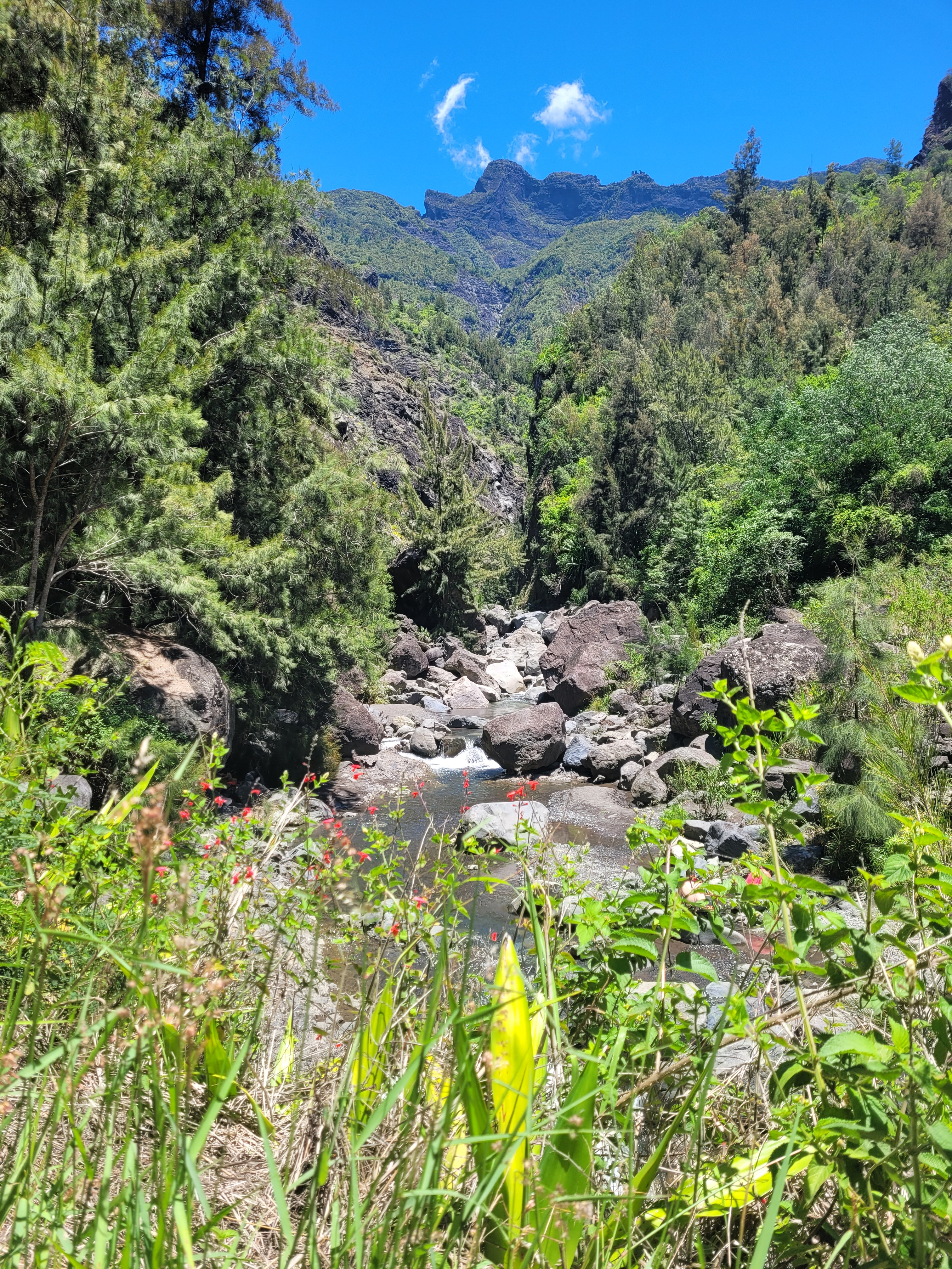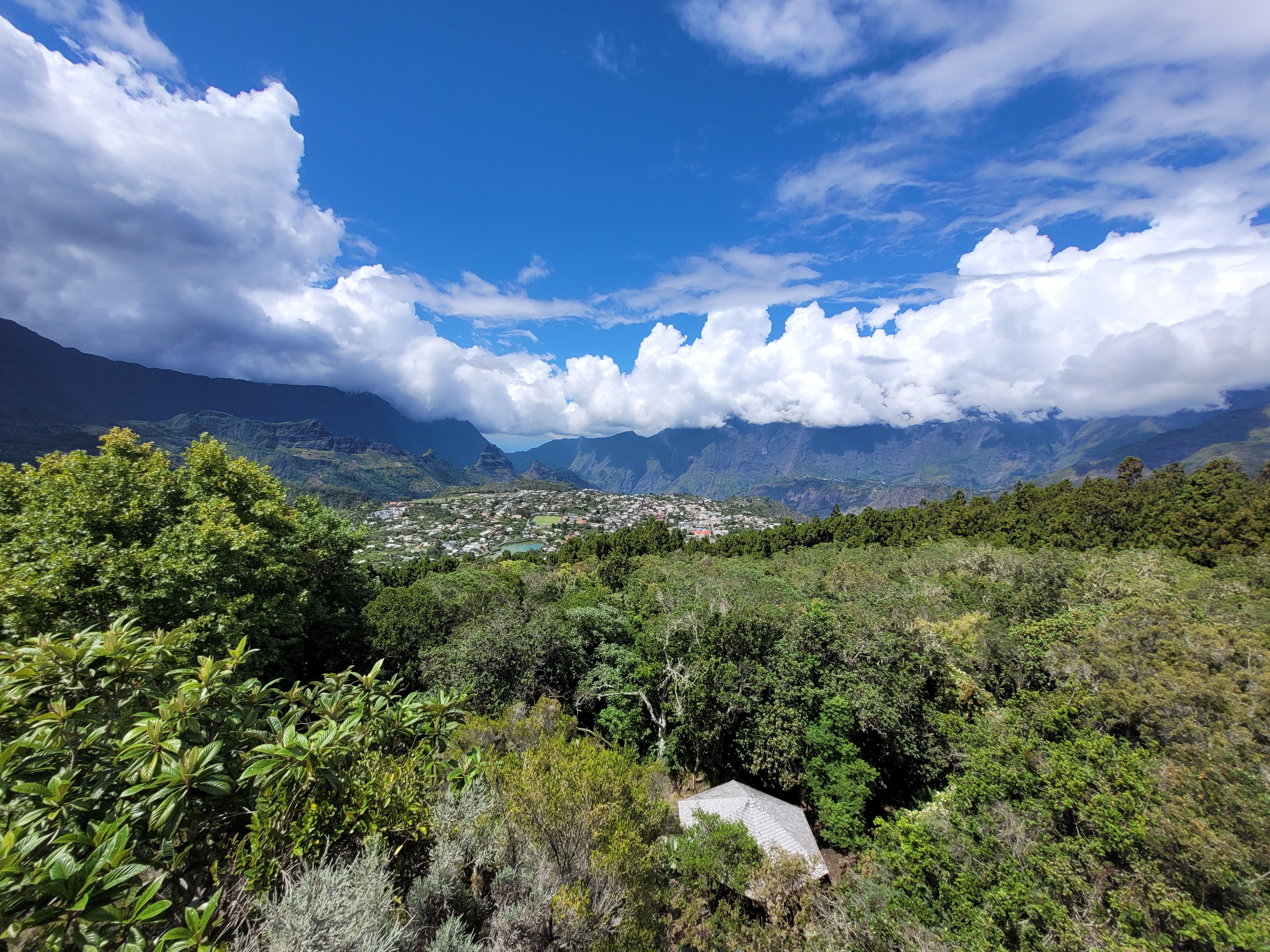 Cilaos est un cirque au climat plutôt sec et plus frais que les autres. Cela nous a tout de suite frappé après notre matinée au Cap Jaune sous un soleil de plomb.