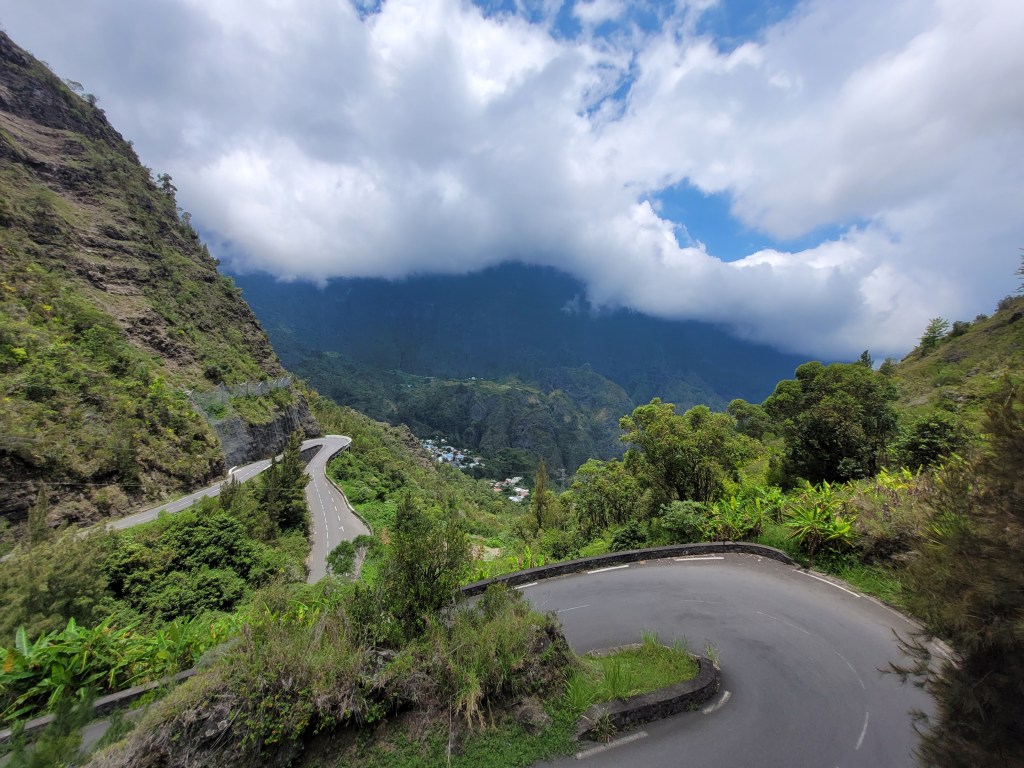 Ensuite, nous sommes remontées vers le nord et avons bifurqué à St Pierre pour prendre la route de Cilaos, la fameuse route aux 400 virages.