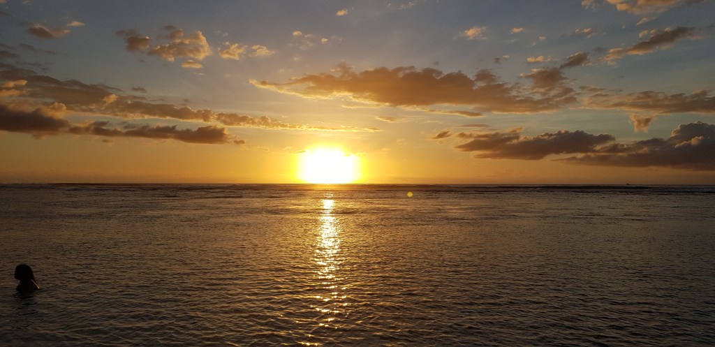 Evidemment, tous les couchers de soleil sont magnifiques depuis la plage, nous n’en avons pas ratés un seul.