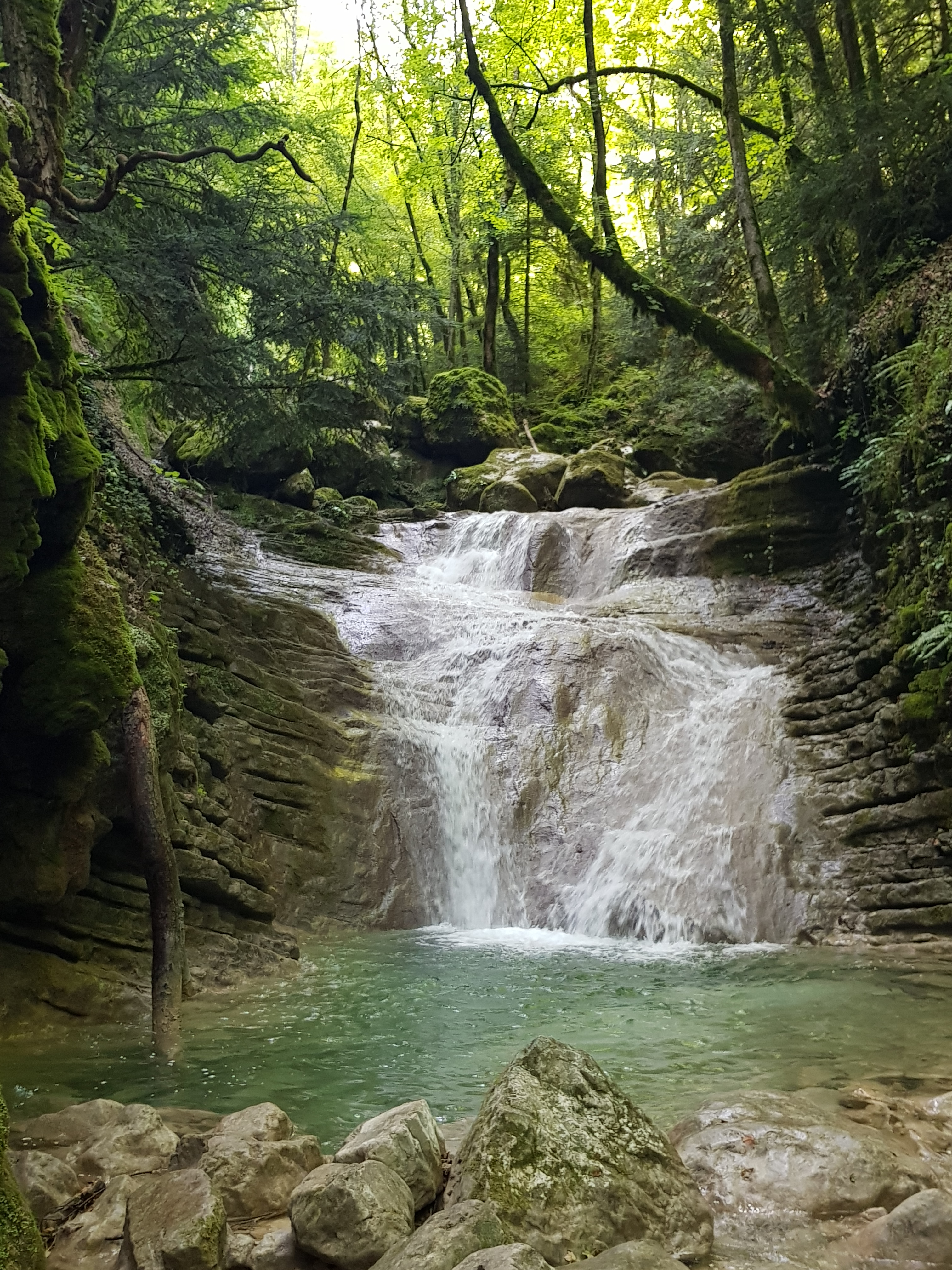 2- La cascade d’Alloix au départ de St Vincent de Mercuze en Chartreuse : nous avions déjà fait cette randonnée jusqu’au point de départ de via ferrata qui se situe tout au bout. J’ avais adoré et j’en avais même fait un article que vous pouvez retrouver ici. Pour cette fois, nous nous sommes arrêtées avant d’attaquer la grosse montée. Plus raisonnable car nous étions accompagnées d’enfants et que nous étions deux femmes enceintes. Mais nous avons bien profité de la fraicheur du torrent et des arbres. Attention avec des enfants, le retour peut s’avérer glissant.