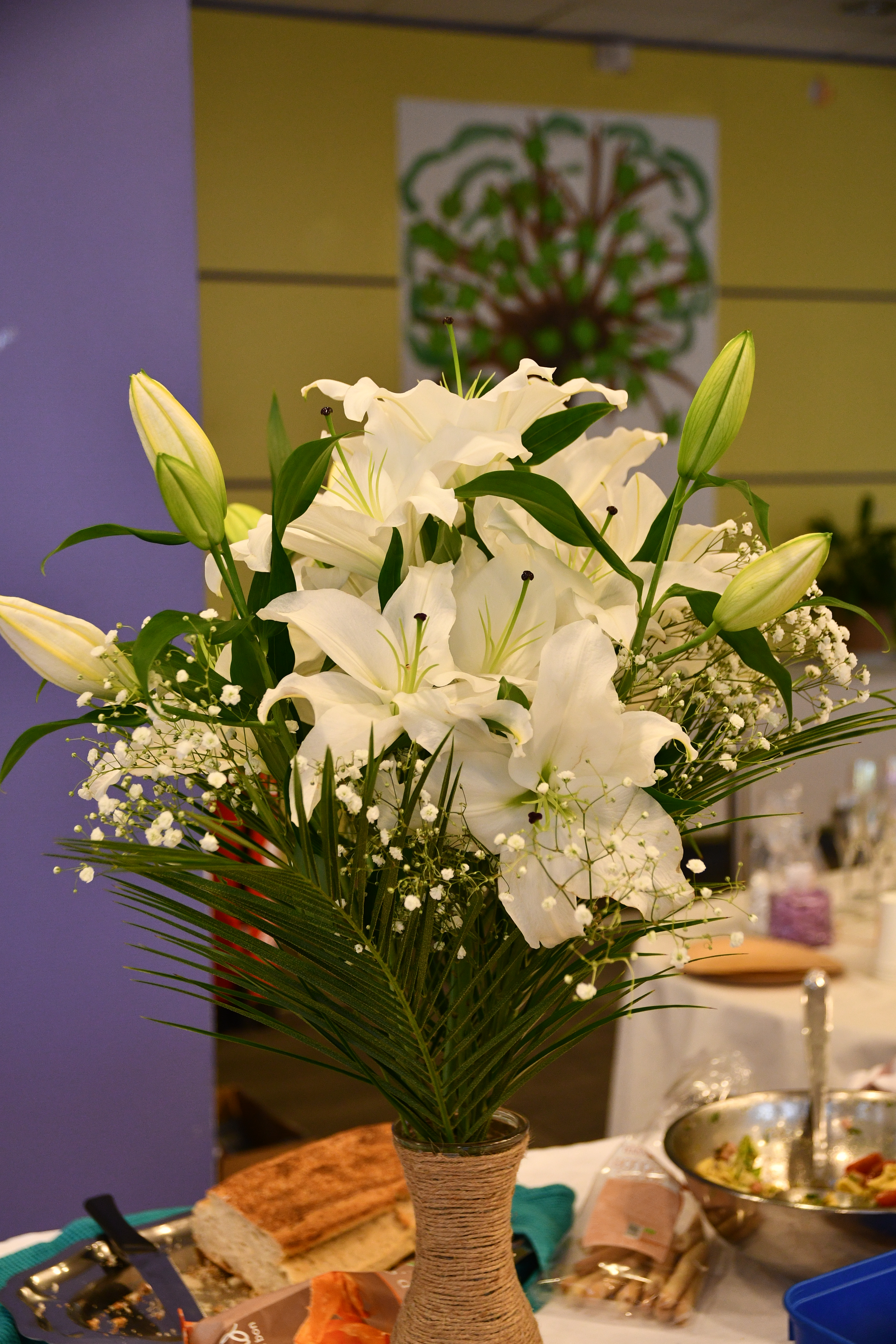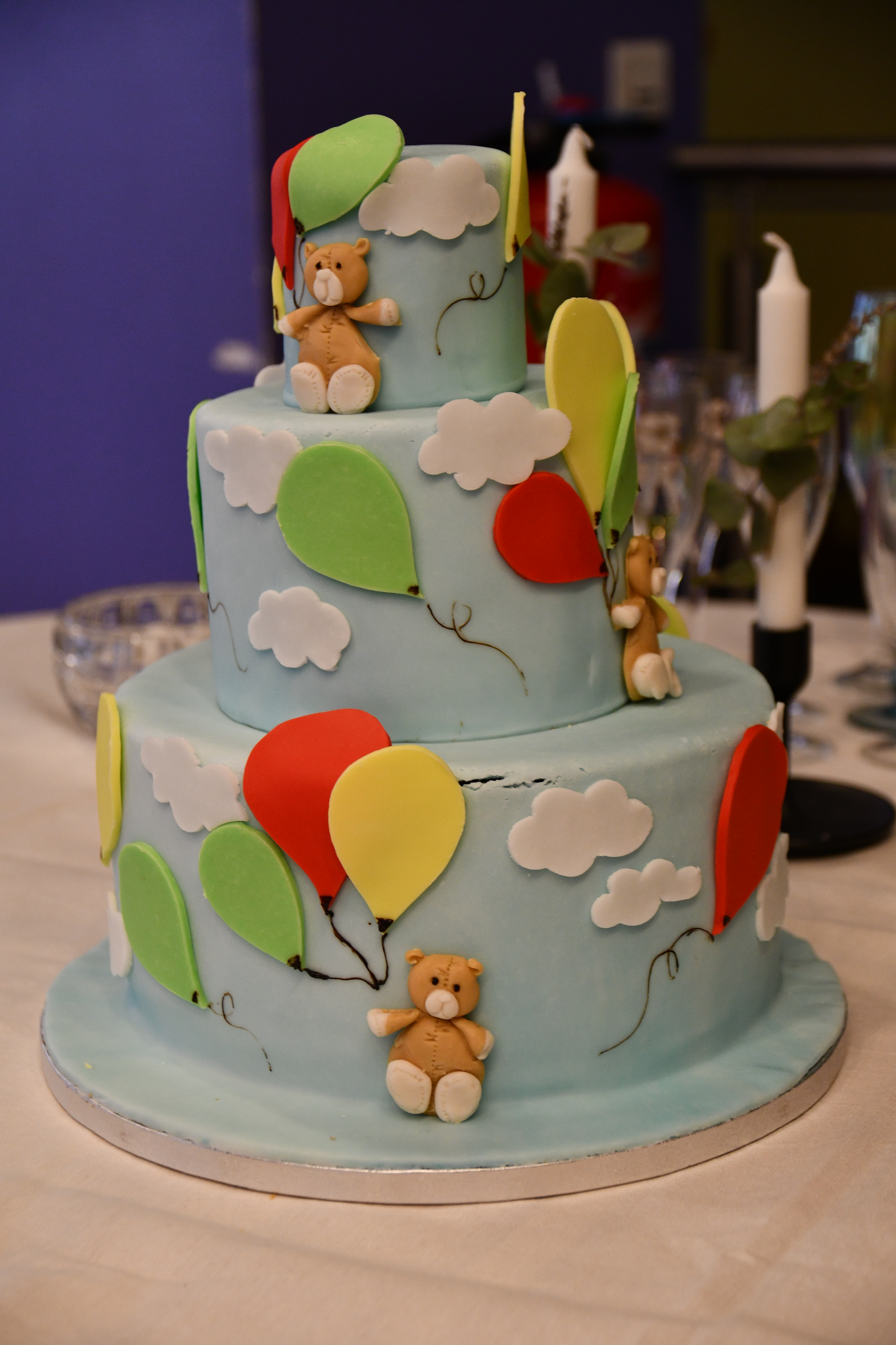 Pour la fête, nous avons eu la chance qu’on nous propose une salle et j’ai réussi à faire une décoration très sympa. Nous avions commandé un superbe gâteau aux Ecrins, où nous avions déjà commandé notre gâteau de mariage.
